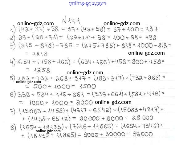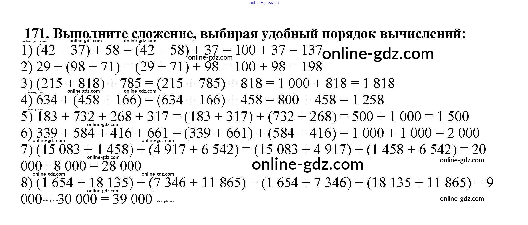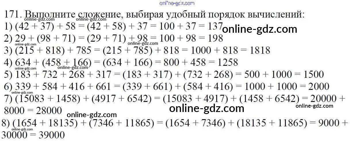 Готовые домашние задания по Математике за 5 класс Учебник Мерзляк, Полонский Алгоритм успеха 2016 - § 7. Сложение натуральных чисел. Свойства сложения Глава 2. Сложение и вычитание натуральных чисел 171