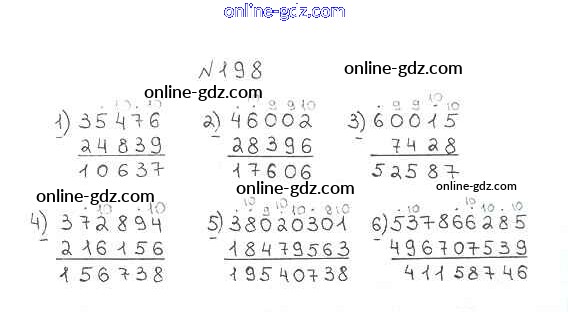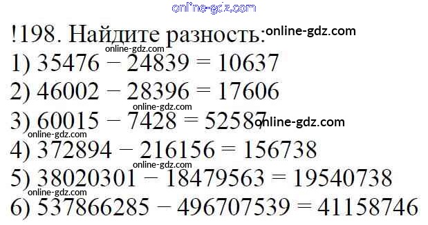 Готовые домашние задания по Математике за 5 класс Учебник Мерзляк, Полонский Алгоритм успеха 2016 - §8. Вычитание натуральных чисел Глава 2. Сложение и вычитание натуральных чисел 198