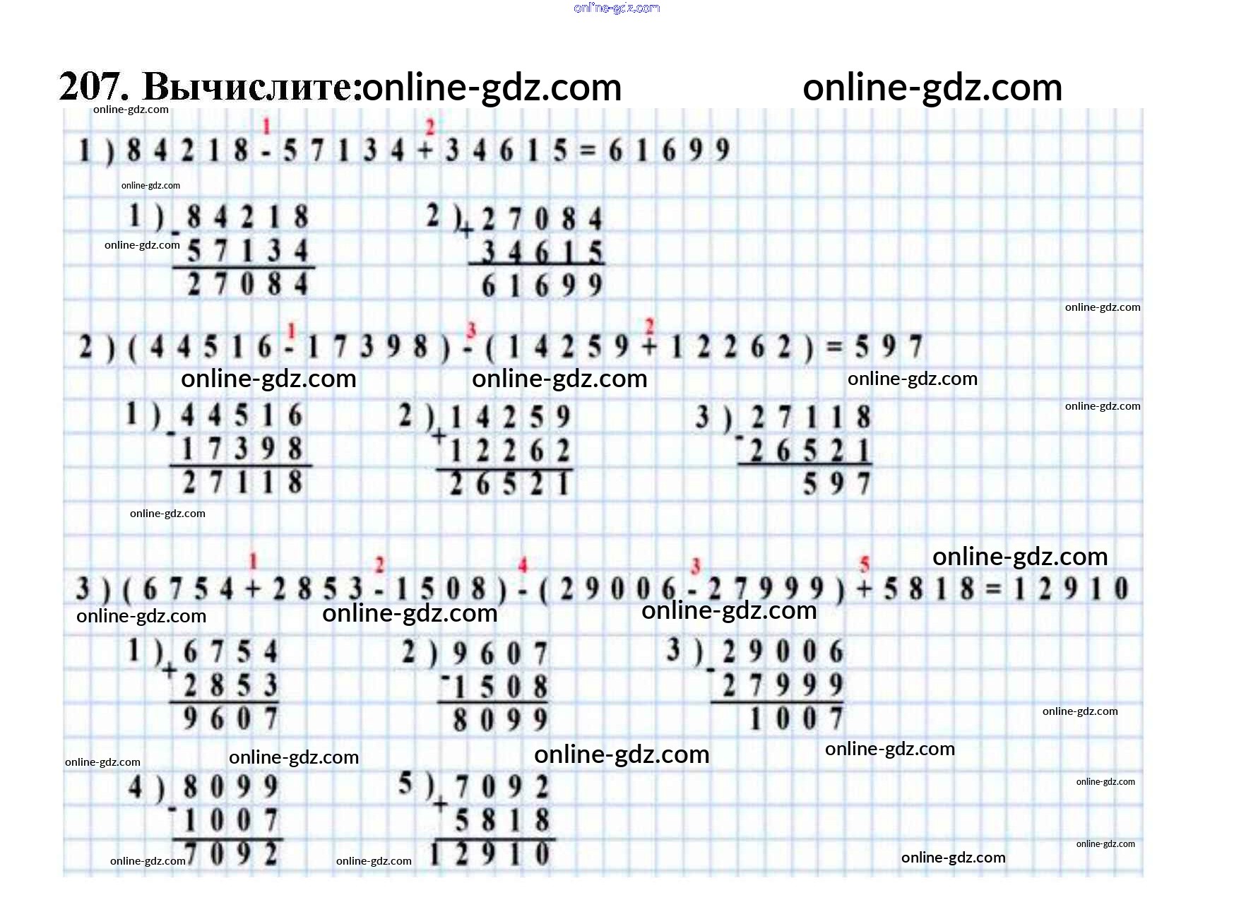 Готовые домашние задания по Математике за 5 класс Учебник Мерзляк, Полонский Алгоритм успеха 2016 - §8. Вычитание натуральных чисел Глава 2. Сложение и вычитание натуральных чисел 207