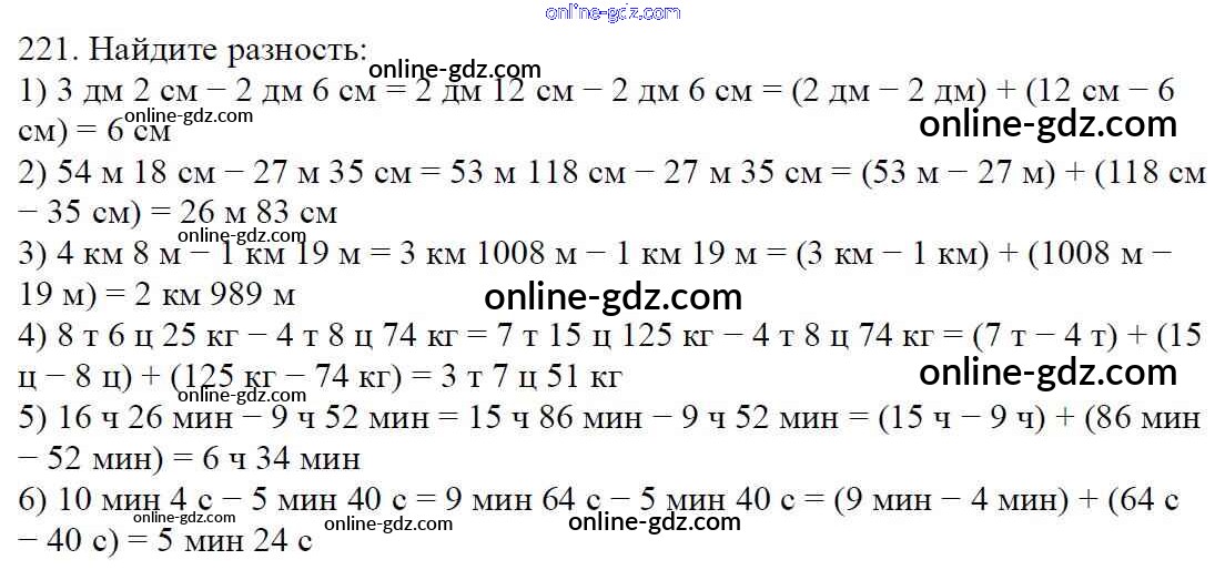 Готовые домашние задания по Математике за 5 класс Учебник Мерзляк, Полонский Алгоритм успеха 2016 - §8. Вычитание натуральных чисел Глава 2. Сложение и вычитание натуральных чисел 221