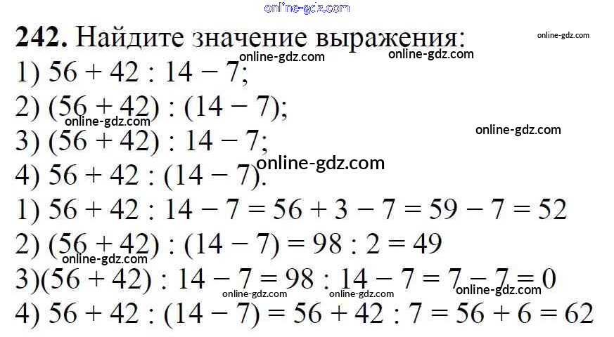 Готовые домашние задания по Математике за 5 класс Учебник Мерзляк, Полонский Алгоритм успеха 2016 - §9. Числовые и буквенные выражения. Формулы Глава 2. Сложение и вычитание натуральных чисел 242