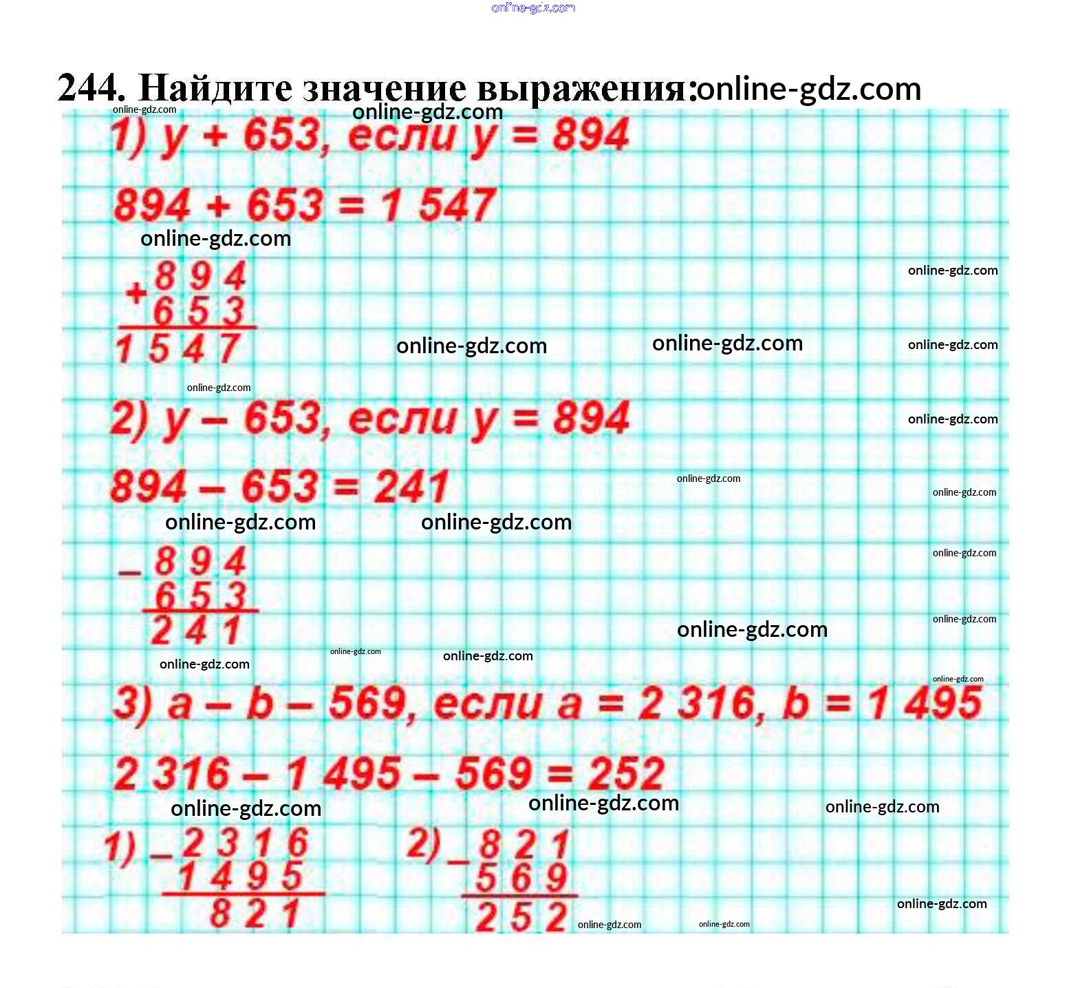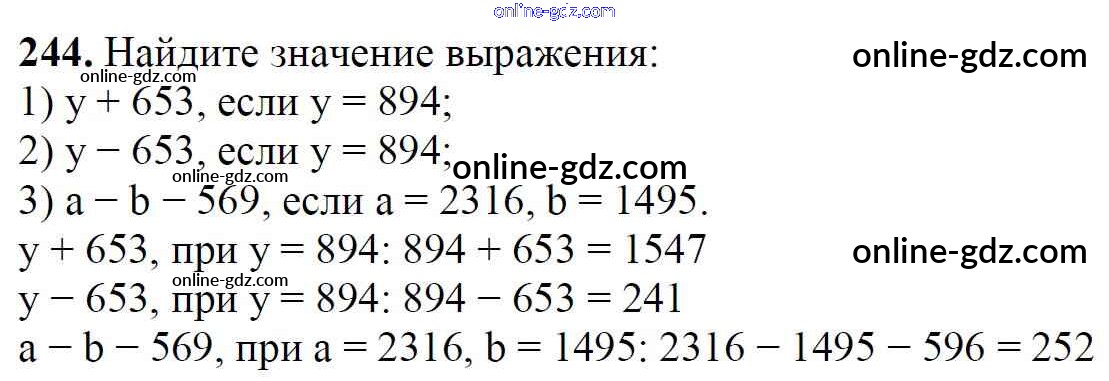 Готовые домашние задания по Математике за 5 класс Учебник Мерзляк, Полонский Алгоритм успеха 2016 - §9. Числовые и буквенные выражения. Формулы Глава 2. Сложение и вычитание натуральных чисел 244