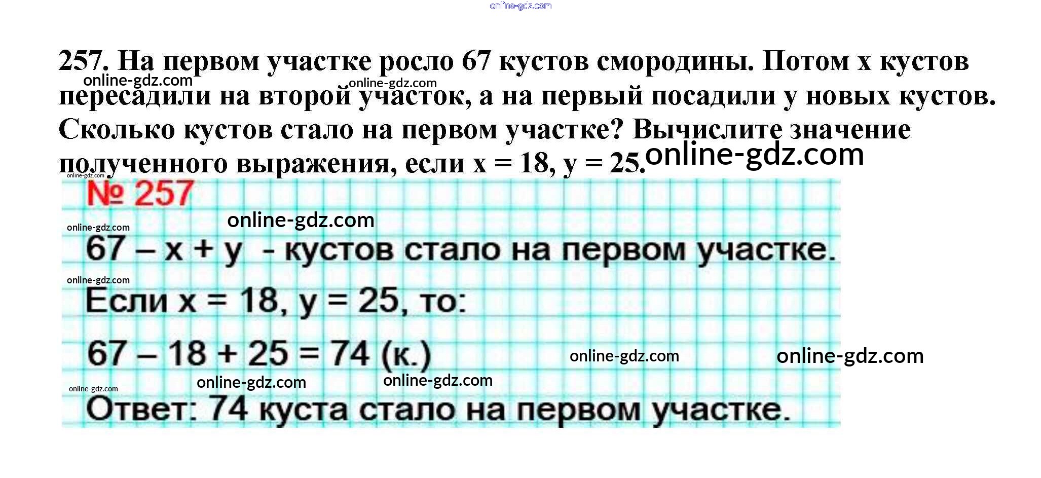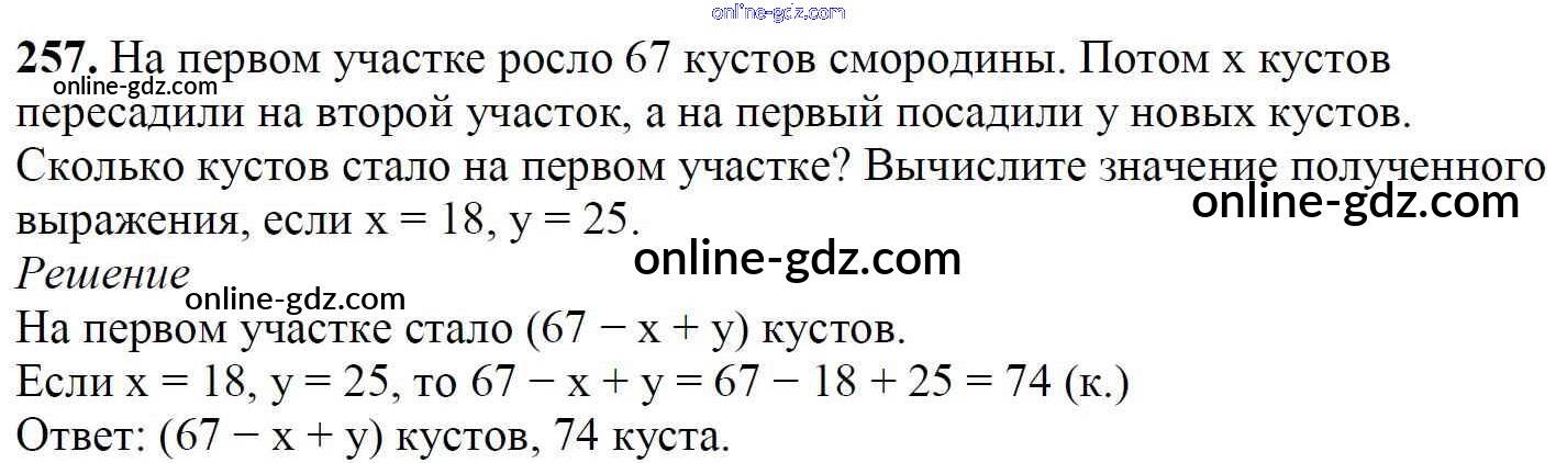 Готовые домашние задания по Математике за 5 класс Учебник Мерзляк, Полонский Алгоритм успеха 2016 - §9. Числовые и буквенные выражения. Формулы Глава 2. Сложение и вычитание натуральных чисел 257