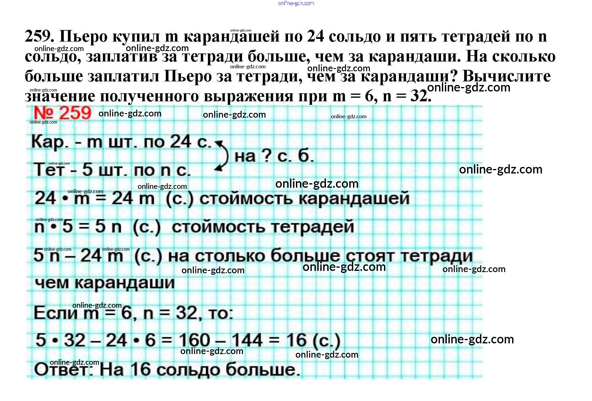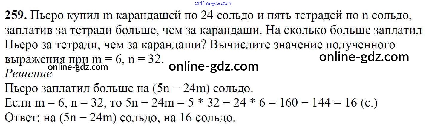 Готовые домашние задания по Математике за 5 класс Учебник Мерзляк, Полонский Алгоритм успеха 2016 - §9. Числовые и буквенные выражения. Формулы Глава 2. Сложение и вычитание натуральных чисел 259