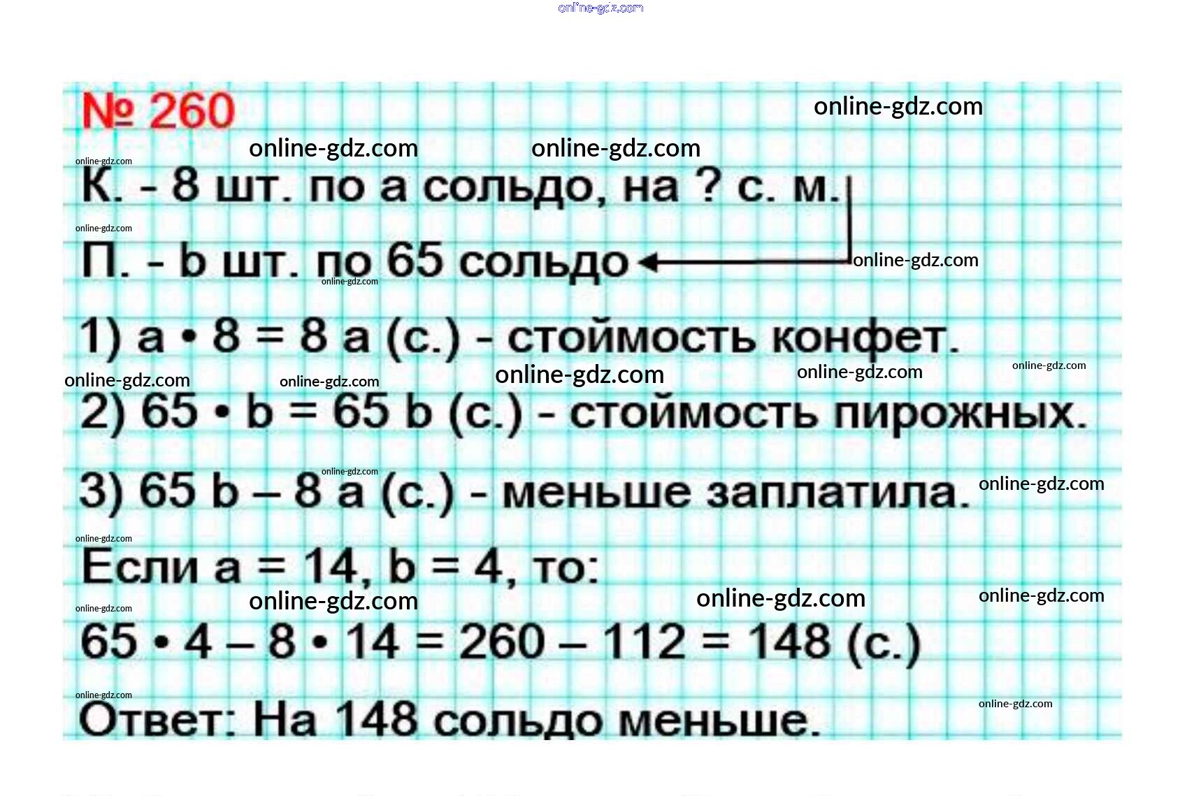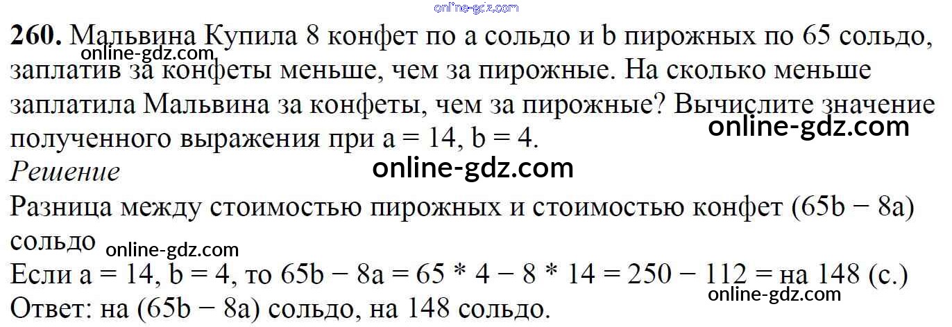 Готовые домашние задания по Математике за 5 класс Учебник Мерзляк, Полонский Алгоритм успеха 2016 - §9. Числовые и буквенные выражения. Формулы Глава 2. Сложение и вычитание натуральных чисел 260