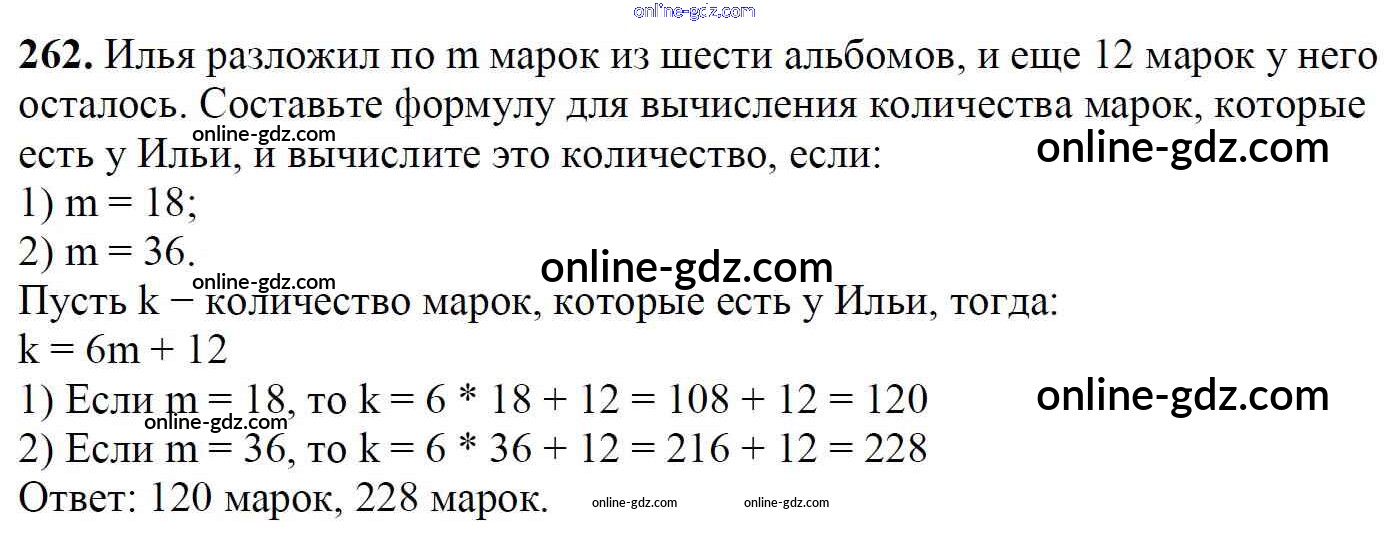 Готовые домашние задания по Математике за 5 класс Учебник Мерзляк, Полонский Алгоритм успеха 2016 - §9. Числовые и буквенные выражения. Формулы Глава 2. Сложение и вычитание натуральных чисел 262