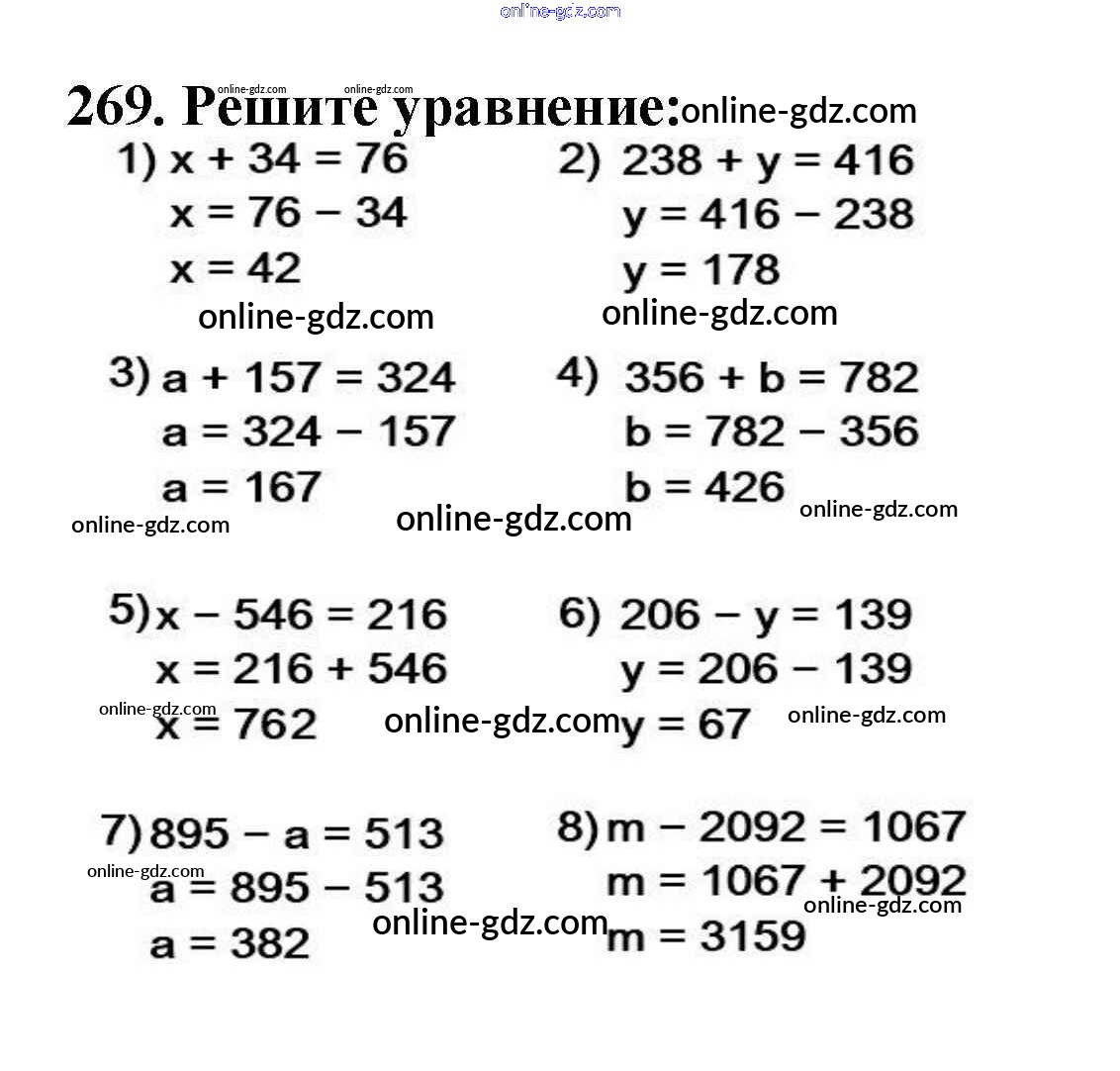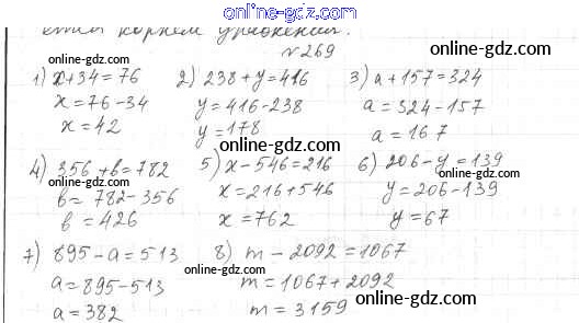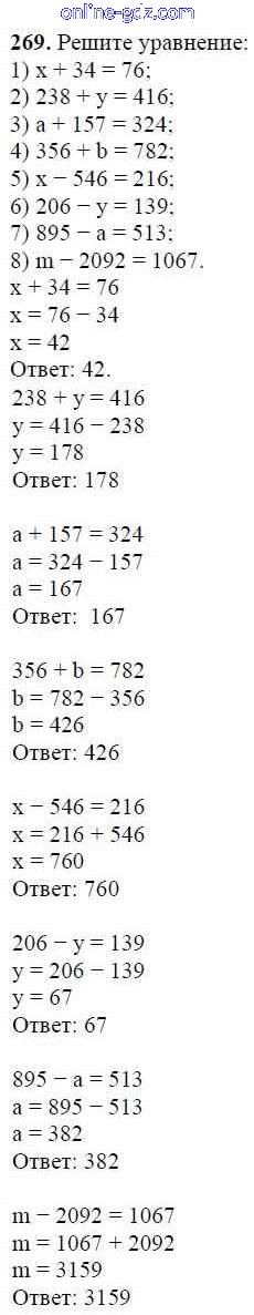 Готовые домашние задания по Математике за 5 класс Учебник Мерзляк, Полонский Алгоритм успеха 2016 - §10. Уравнение Глава 2. Сложение и вычитание натуральных чисел 269