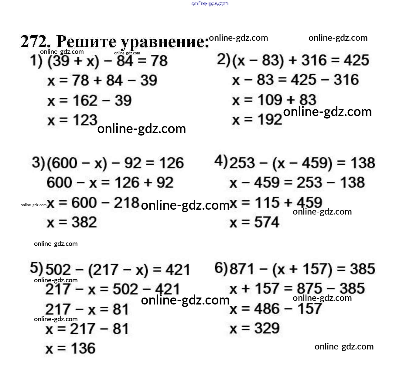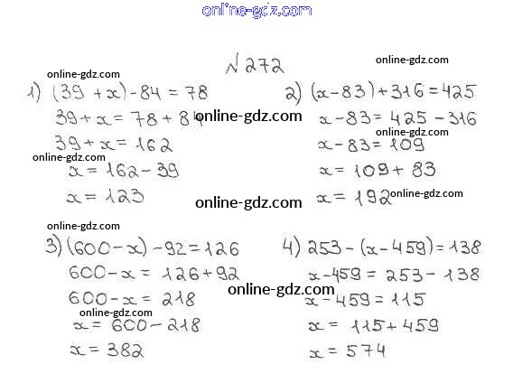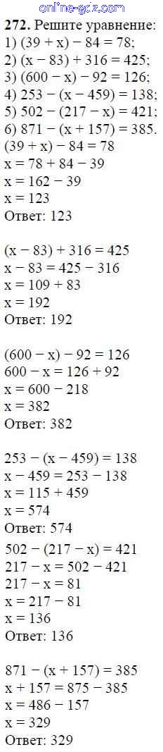 Готовые домашние задания по Математике за 5 класс Учебник Мерзляк, Полонский Алгоритм успеха 2016 - §10. Уравнение Глава 2. Сложение и вычитание натуральных чисел 272