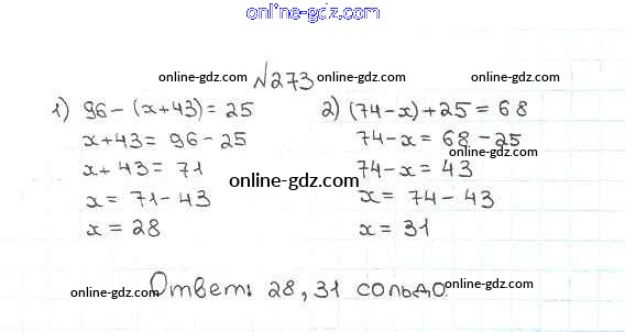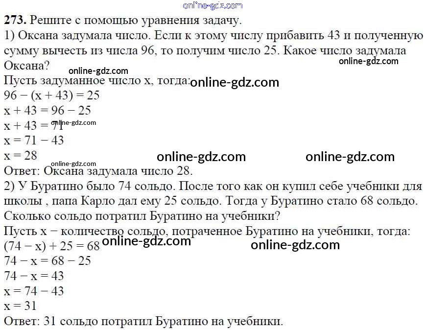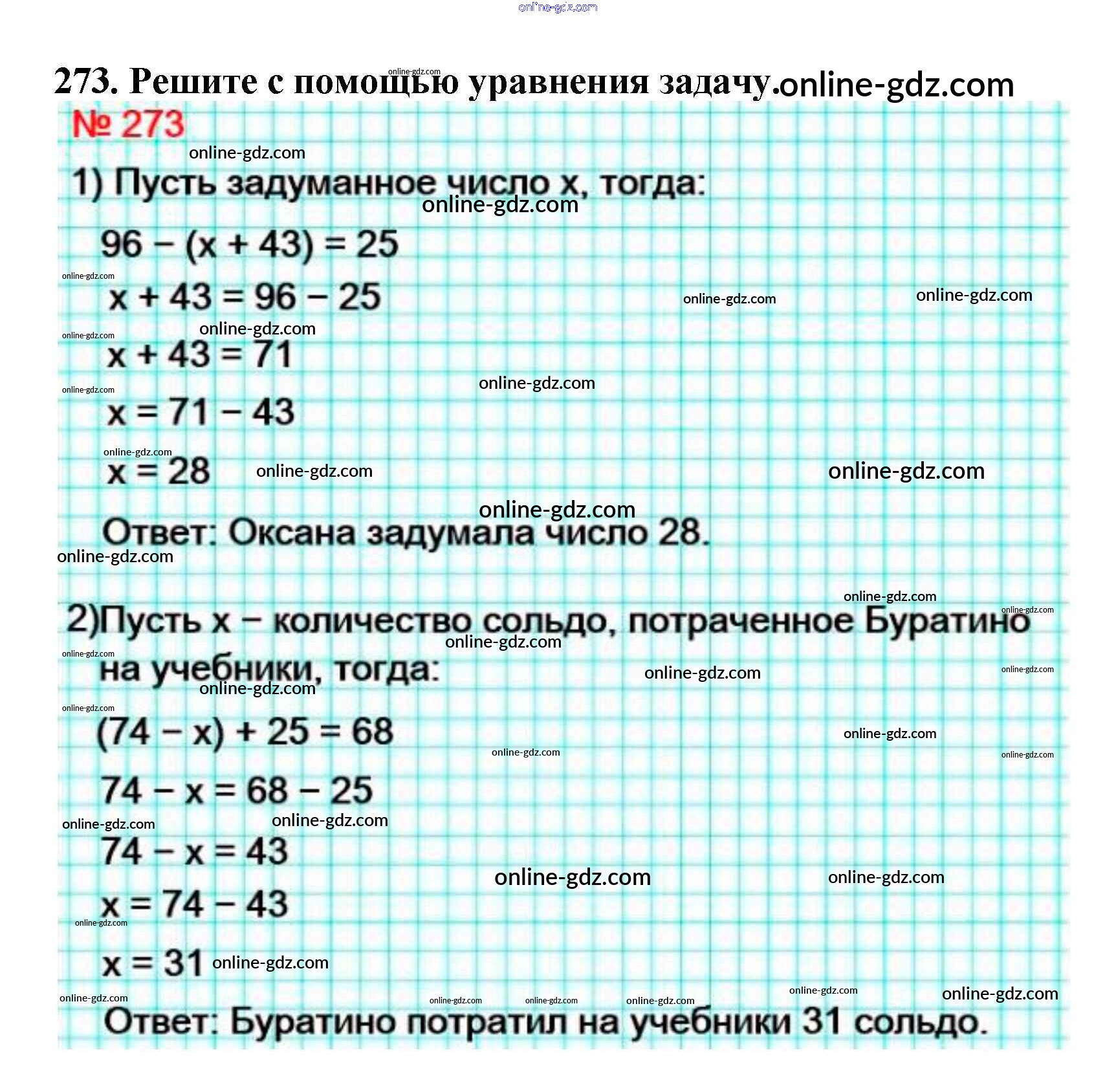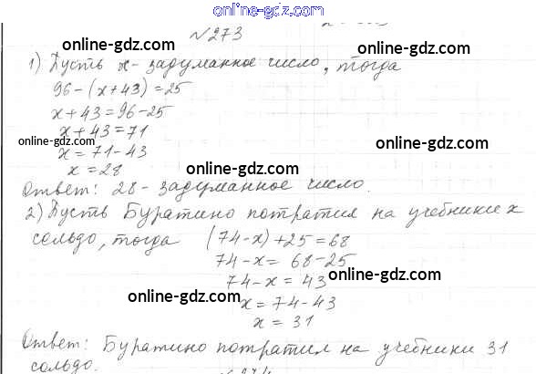 Готовые домашние задания по Математике за 5 класс Учебник Мерзляк, Полонский Алгоритм успеха 2016 - §10. Уравнение Глава 2. Сложение и вычитание натуральных чисел 273
