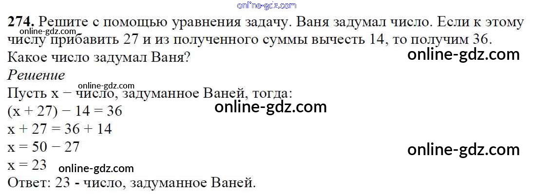 Готовые домашние задания по Математике за 5 класс Учебник Мерзляк, Полонский Алгоритм успеха 2016 - §10. Уравнение Глава 2. Сложение и вычитание натуральных чисел 274