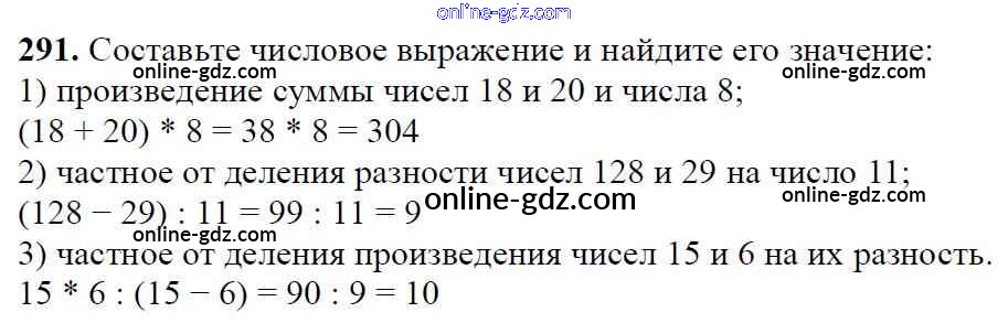 Готовые домашние задания по Математике за 5 класс Учебник Мерзляк, Полонский Алгоритм успеха 2016 - §11. Угол. Обозначение углов Глава 2. Сложение и вычитание натуральных чисел 291