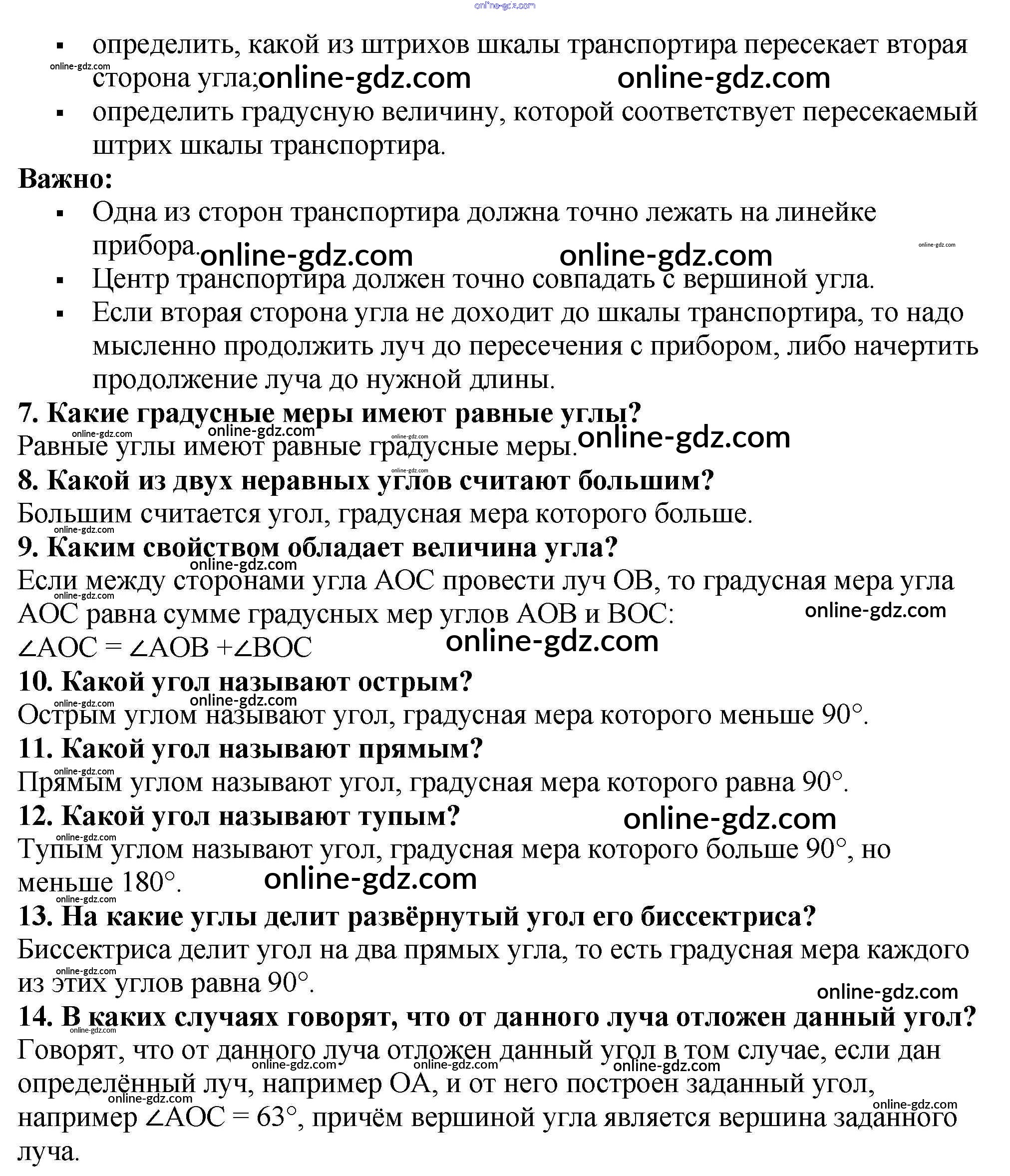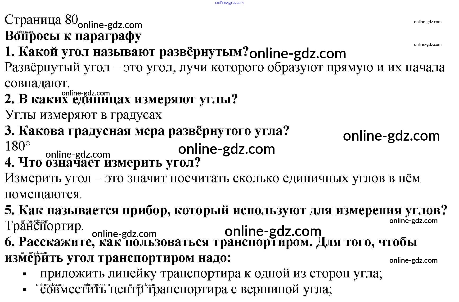 Готовые домашние задания по Математике за 5 класс Учебник Мерзляк, Полонский Алгоритм успеха 2016 - Вопросы (страницы 80-81) §12. Виды углов. Измерение углов страницы 80-81