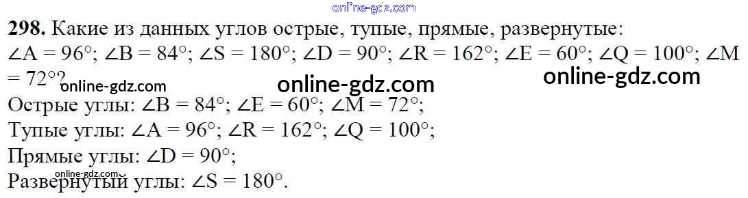 Готовые домашние задания по Математике за 5 класс Учебник Мерзляк, Полонский Алгоритм успеха 2016 - §12. Виды углов. Измерение углов Глава 2. Сложение и вычитание натуральных чисел 298