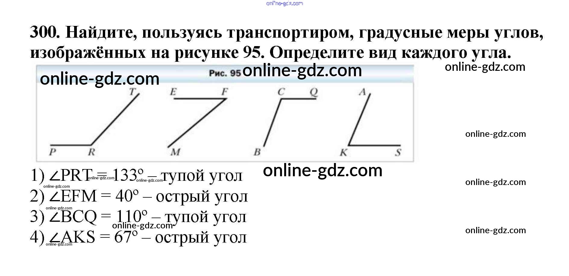 Готовые домашние задания по Математике за 5 класс Учебник Мерзляк, Полонский Алгоритм успеха 2016 - §12. Виды углов. Измерение углов Глава 2. Сложение и вычитание натуральных чисел 300