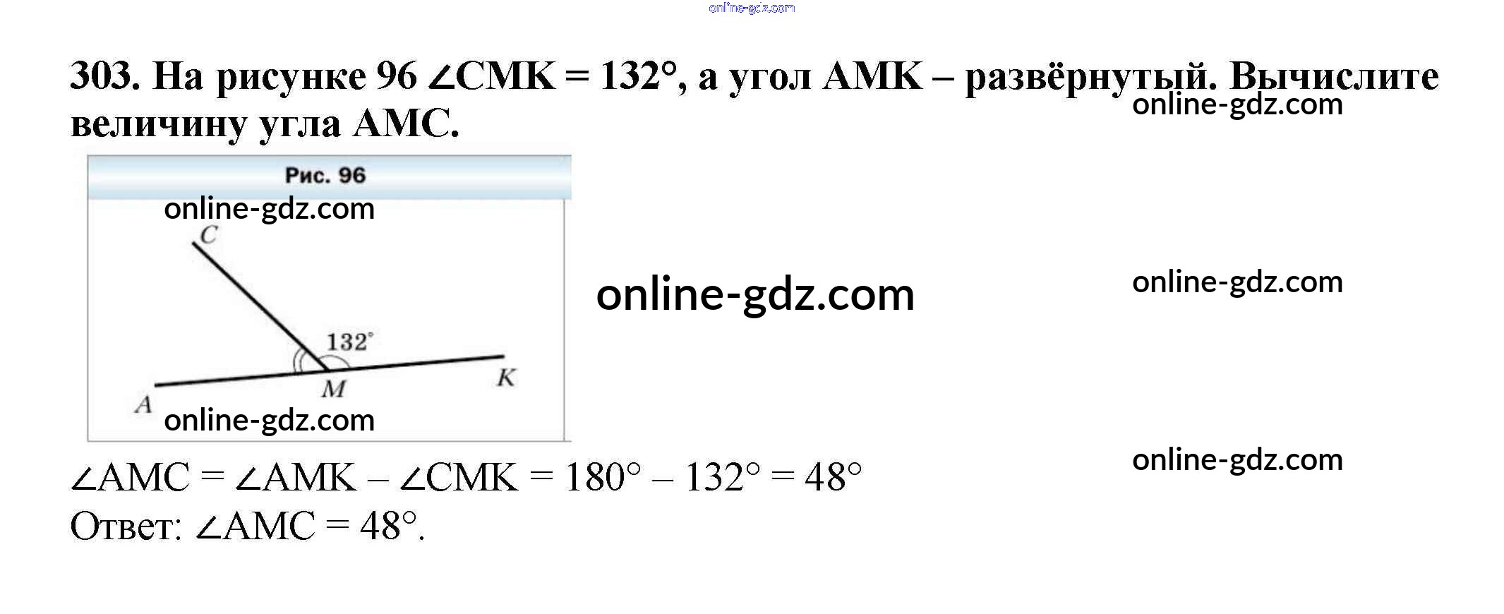 Готовые домашние задания по Математике за 5 класс Учебник Мерзляк, Полонский Алгоритм успеха 2016 - §12. Виды углов. Измерение углов Глава 2. Сложение и вычитание натуральных чисел 303