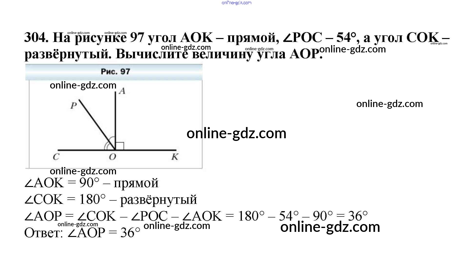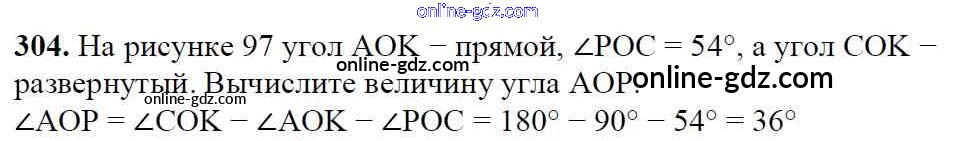 Готовые домашние задания по Математике за 5 класс Учебник Мерзляк, Полонский Алгоритм успеха 2016 - §12. Виды углов. Измерение углов Глава 2. Сложение и вычитание натуральных чисел 304