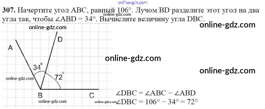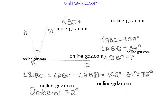 Готовые домашние задания по Математике за 5 класс Учебник Мерзляк, Полонский Алгоритм успеха 2016 - §12. Виды углов. Измерение углов Глава 2. Сложение и вычитание натуральных чисел 307