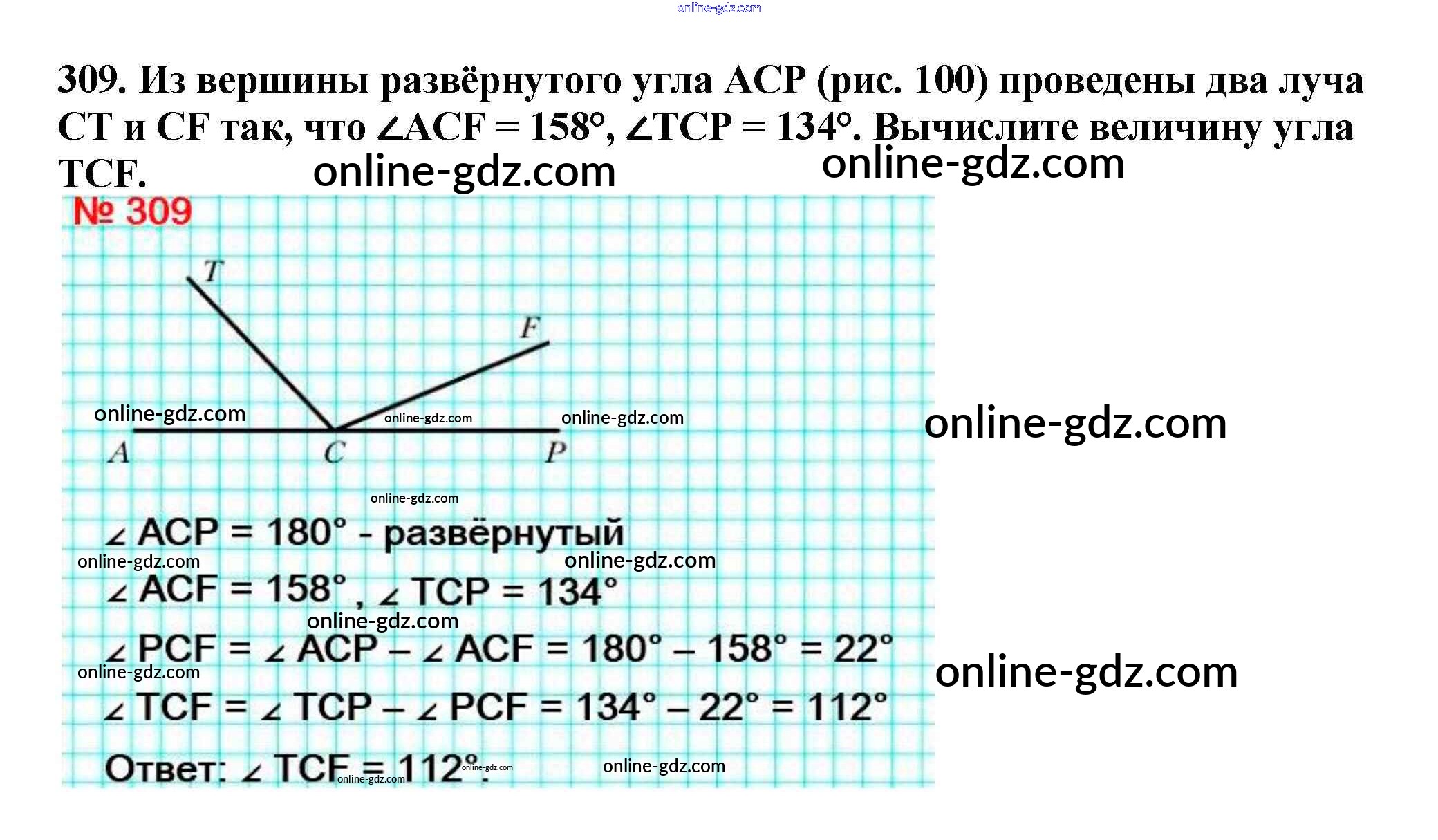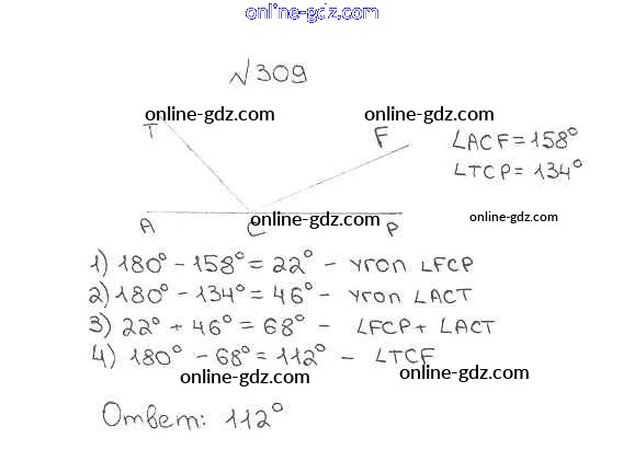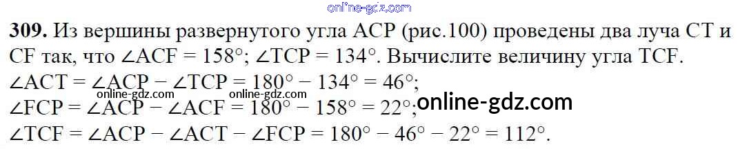 Готовые домашние задания по Математике за 5 класс Учебник Мерзляк, Полонский Алгоритм успеха 2016 - §12. Виды углов. Измерение углов Глава 2. Сложение и вычитание натуральных чисел 309