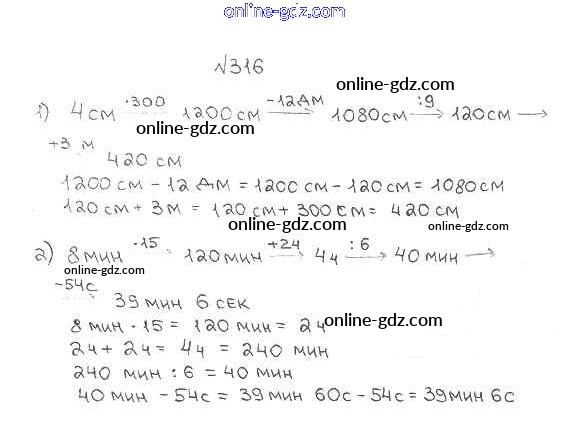 Готовые домашние задания по Математике за 5 класс Учебник Мерзляк, Полонский Алгоритм успеха 2016 - §12. Виды углов. Измерение углов Глава 2. Сложение и вычитание натуральных чисел 316