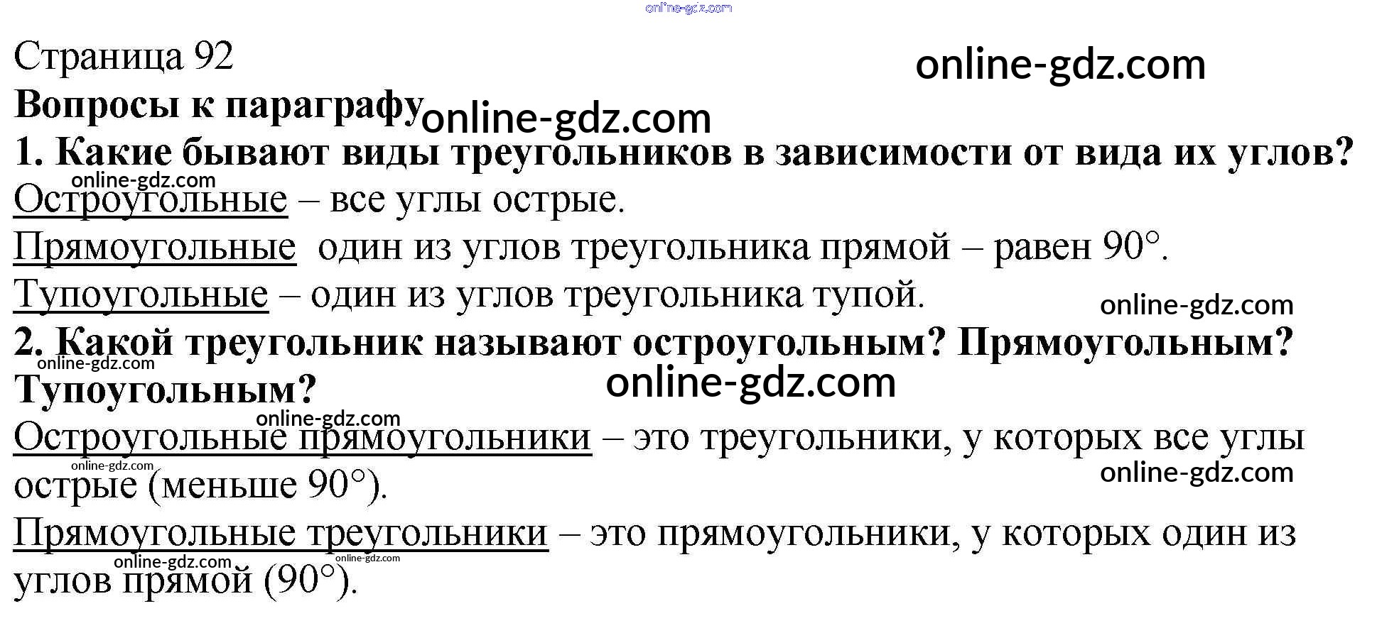Готовые домашние задания по Математике за 5 класс Учебник Мерзляк, Полонский Алгоритм успеха 2016 - Вопросы (страница 92) §14. Треугольник и его виды страница 92