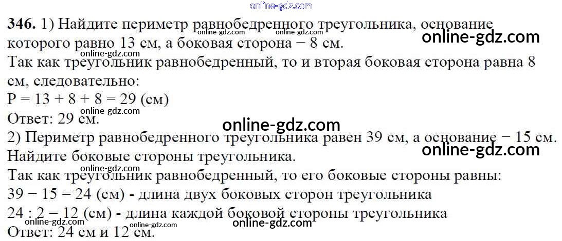 Готовые домашние задания по Математике за 5 класс Учебник Мерзляк, Полонский Алгоритм успеха 2016 - §14. Треугольник и его виды Глава 2. Сложение и вычитание натуральных чисел 346