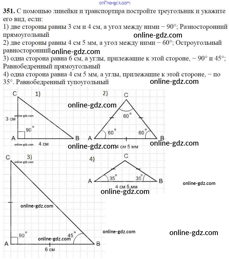 Готовые домашние задания по Математике за 5 класс Учебник Мерзляк, Полонский Алгоритм успеха 2016 - §14. Треугольник и его виды Глава 2. Сложение и вычитание натуральных чисел 351