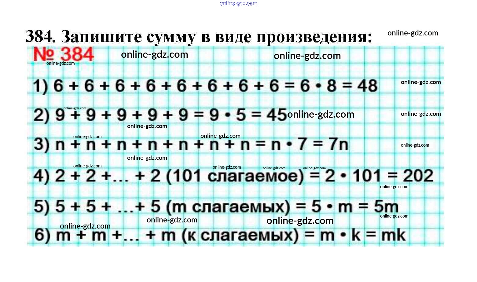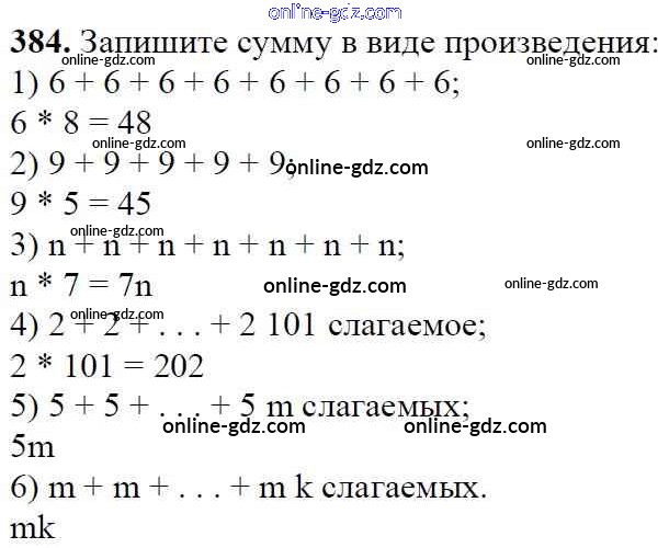 Готовые домашние задания по Математике за 5 класс Учебник Мерзляк, Полонский Алгоритм успеха 2016 - §16. Умножение. Переместительное свойство умножения Глава 3. Умножение и деление натуральных чисел 384