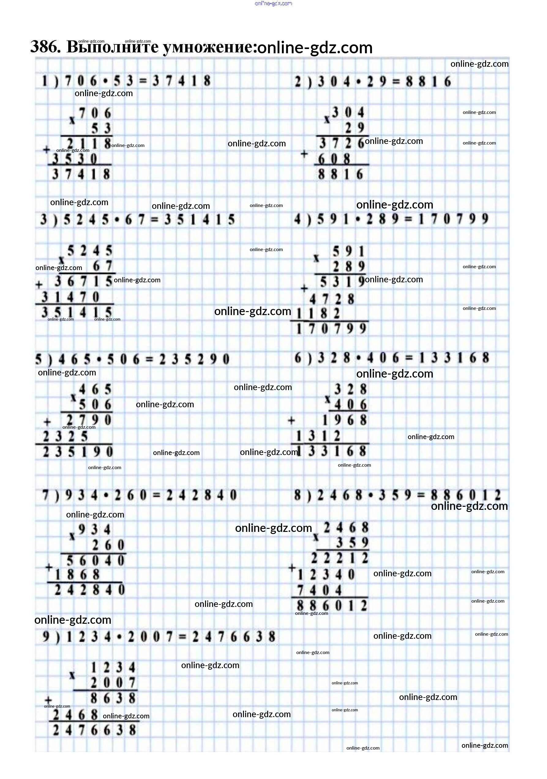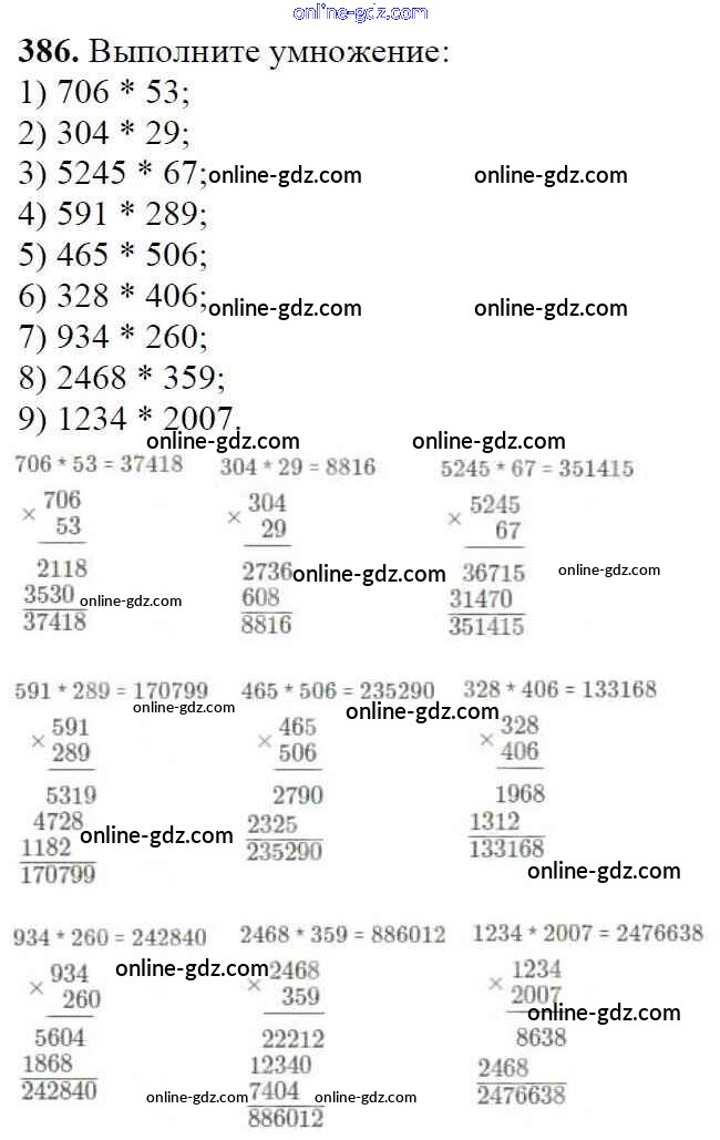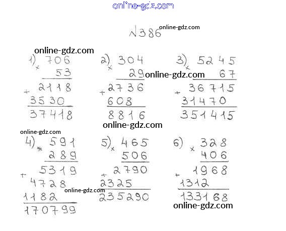 Готовые домашние задания по Математике за 5 класс Учебник Мерзляк, Полонский Алгоритм успеха 2016 - §16. Умножение. Переместительное свойство умножения Глава 3. Умножение и деление натуральных чисел 386