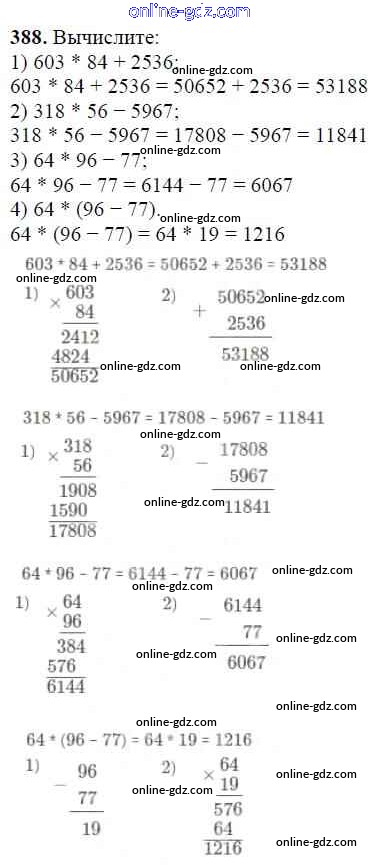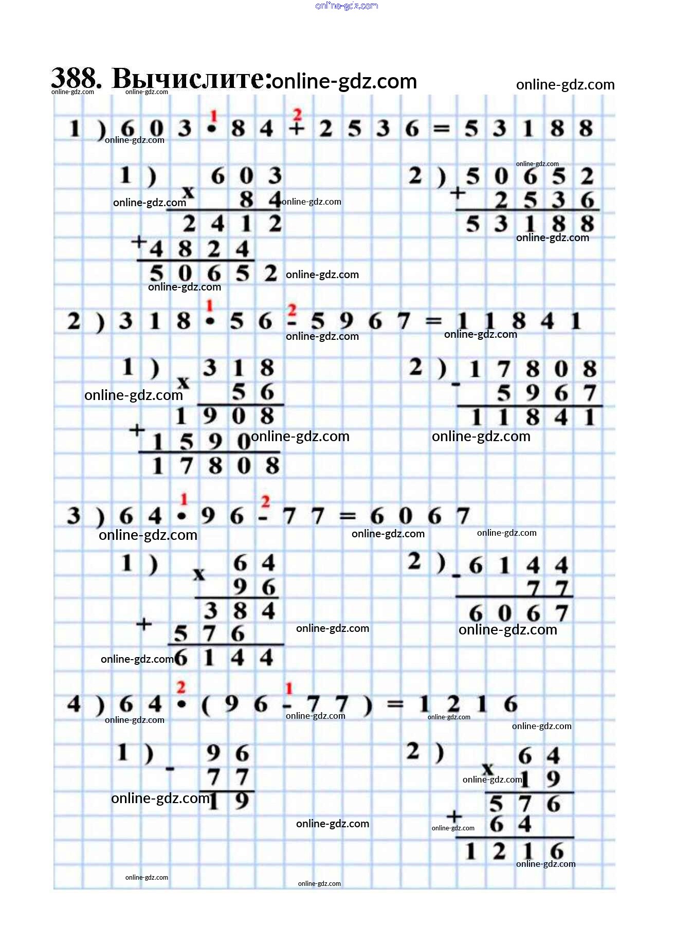 Готовые домашние задания по Математике за 5 класс Учебник Мерзляк, Полонский Алгоритм успеха 2016 - §16. Умножение. Переместительное свойство умножения Глава 3. Умножение и деление натуральных чисел 388