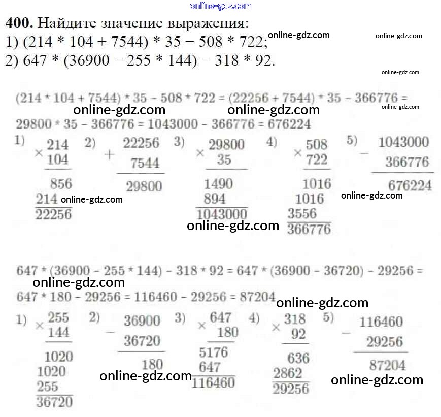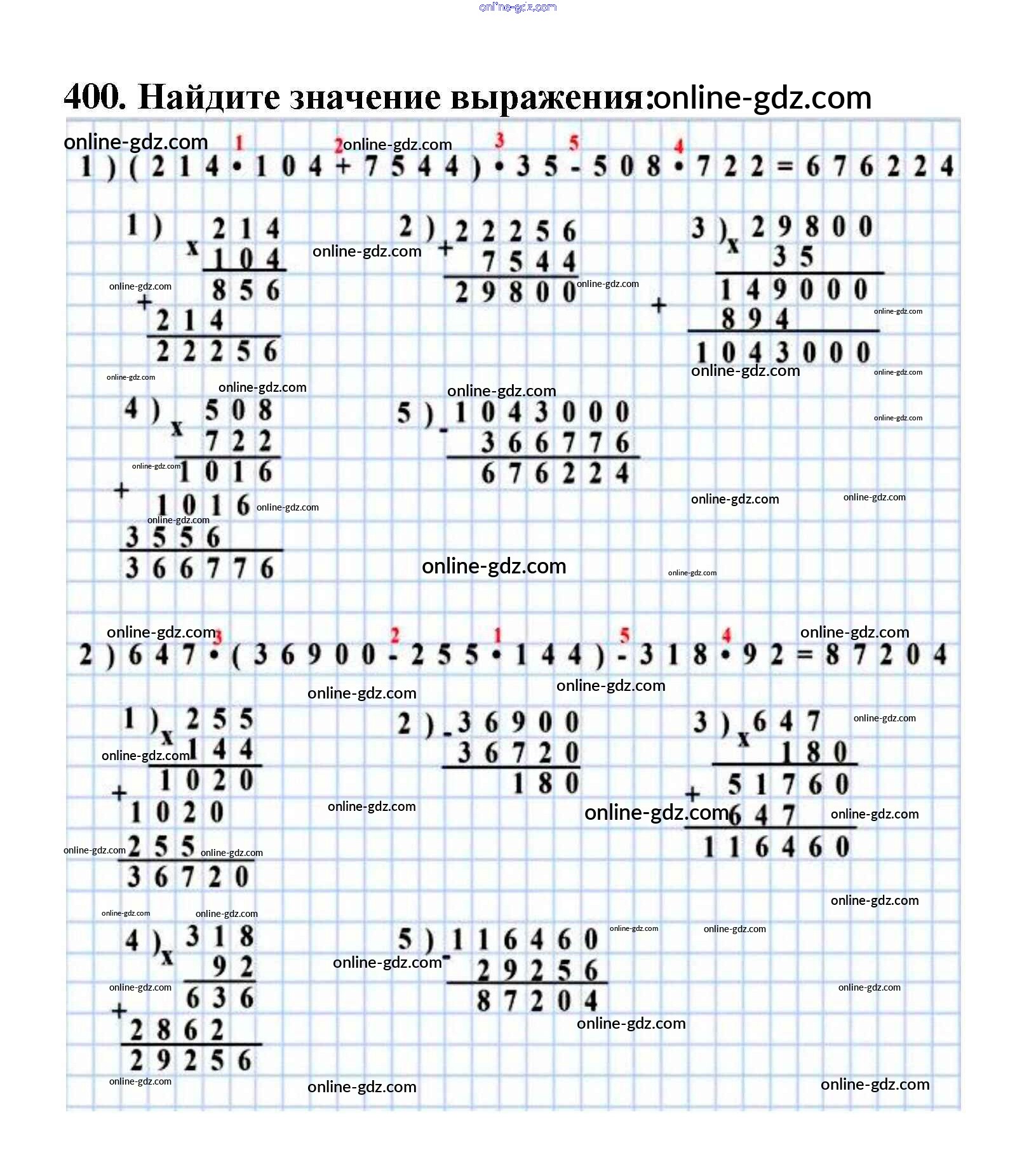 Готовые домашние задания по Математике за 5 класс Учебник Мерзляк, Полонский Алгоритм успеха 2016 - §16. Умножение. Переместительное свойство умножения Глава 3. Умножение и деление натуральных чисел 400