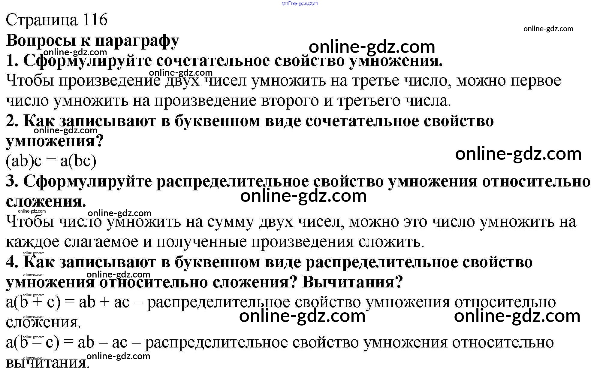 Готовые домашние задания по Математике за 5 класс Учебник Мерзляк, Полонский Алгоритм успеха 2016 - Вопросы (страница 116) §17. Сочетательное и распределительное свойства умножения страница 116