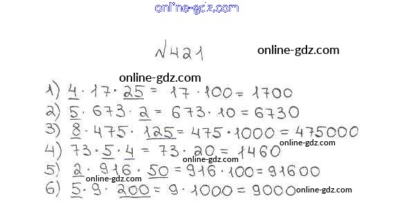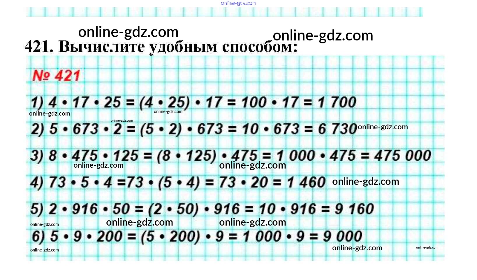 Готовые домашние задания по Математике за 5 класс Учебник Мерзляк, Полонский Алгоритм успеха 2016 - §17. Сочетательное и распределительное свойства умножения Глава 3. Умножение и деление натуральных чисел 421