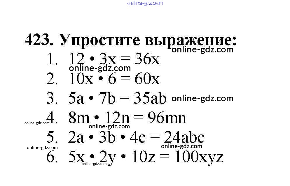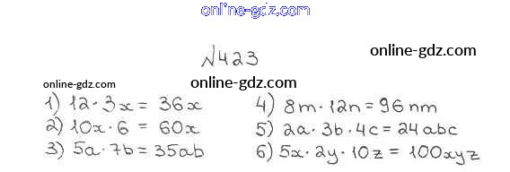 Готовые домашние задания по Математике за 5 класс Учебник Мерзляк, Полонский Алгоритм успеха 2016 - §17. Сочетательное и распределительное свойства умножения Глава 3. Умножение и деление натуральных чисел 423