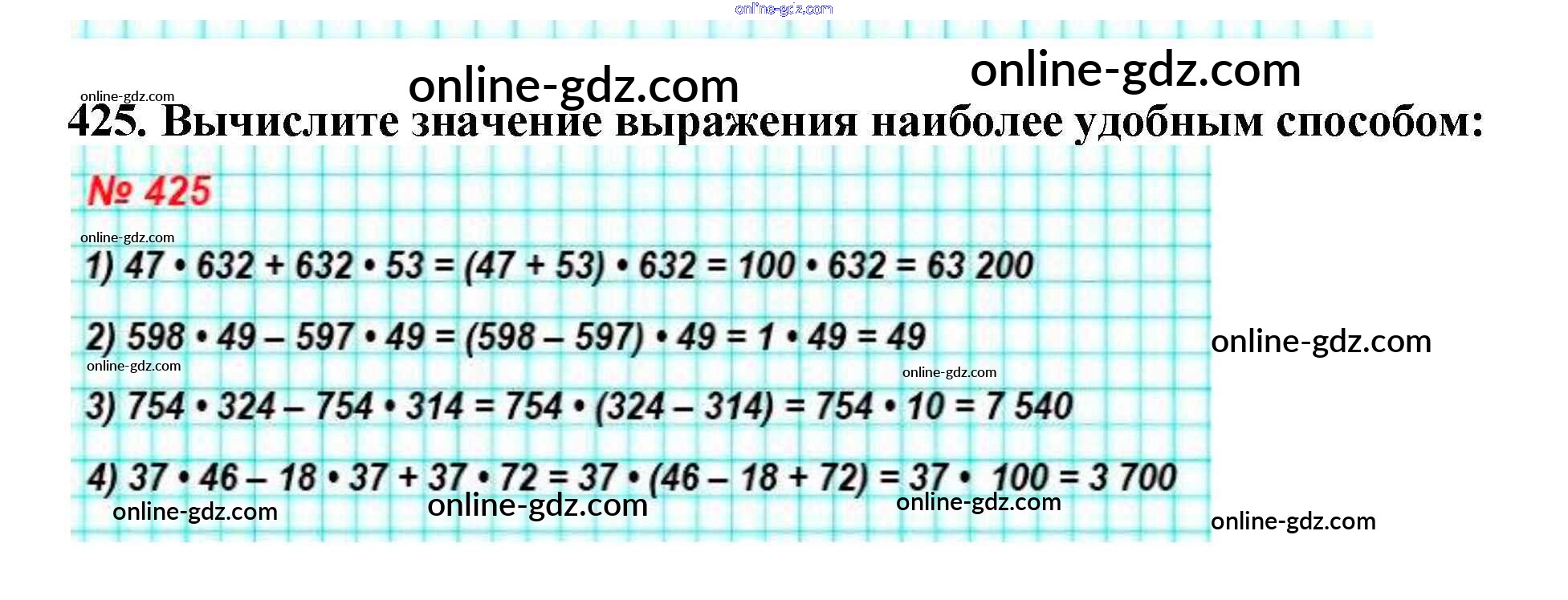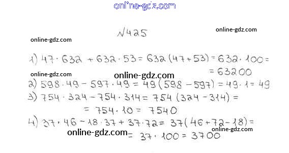 Готовые домашние задания по Математике за 5 класс Учебник Мерзляк, Полонский Алгоритм успеха 2016 - §17. Сочетательное и распределительное свойства умножения Глава 3. Умножение и деление натуральных чисел 425