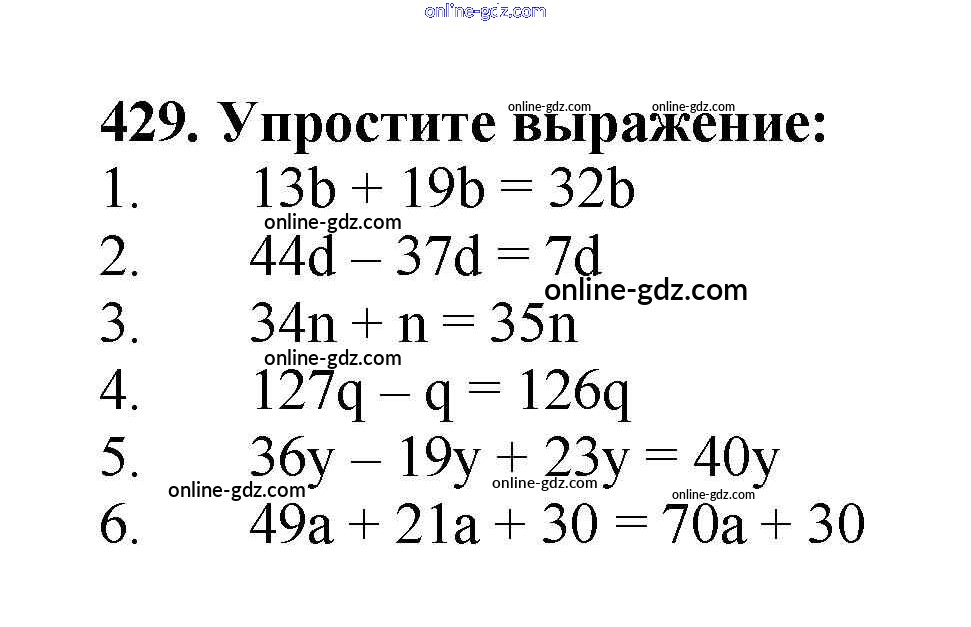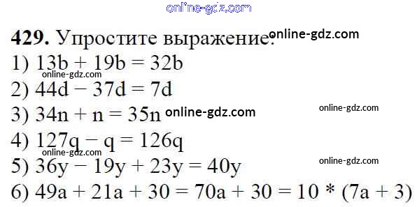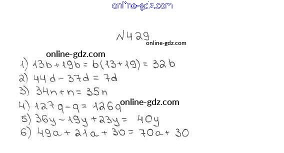 Готовые домашние задания по Математике за 5 класс Учебник Мерзляк, Полонский Алгоритм успеха 2016 - §17. Сочетательное и распределительное свойства умножения Глава 3. Умножение и деление натуральных чисел 429