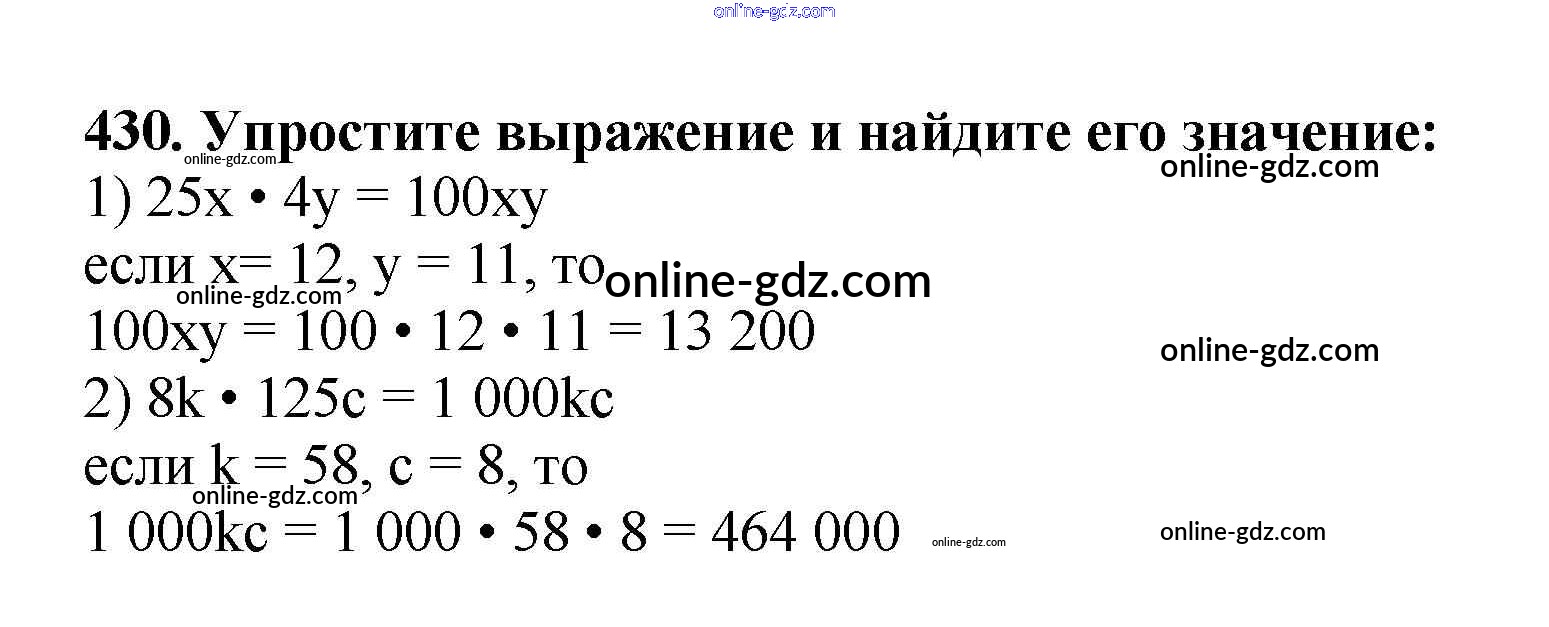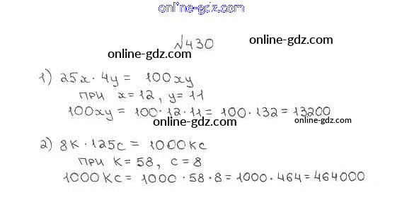 Готовые домашние задания по Математике за 5 класс Учебник Мерзляк, Полонский Алгоритм успеха 2016 - §17. Сочетательное и распределительное свойства умножения Глава 3. Умножение и деление натуральных чисел 430