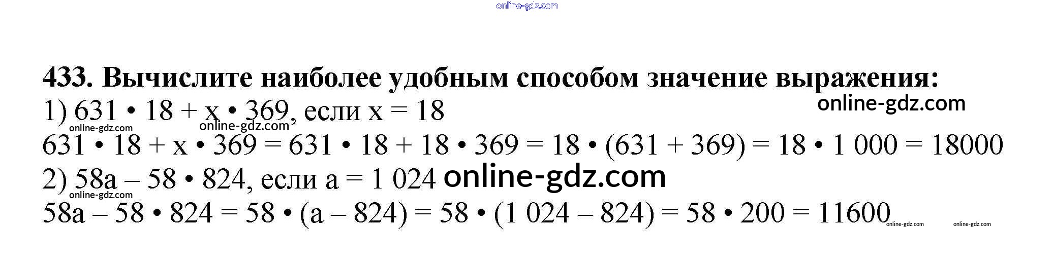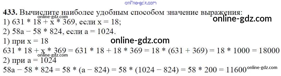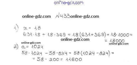 Готовые домашние задания по Математике за 5 класс Учебник Мерзляк, Полонский Алгоритм успеха 2016 - §17. Сочетательное и распределительное свойства умножения Глава 3. Умножение и деление натуральных чисел 433