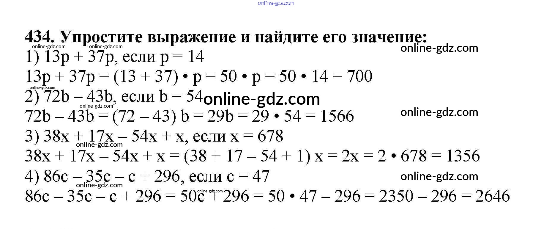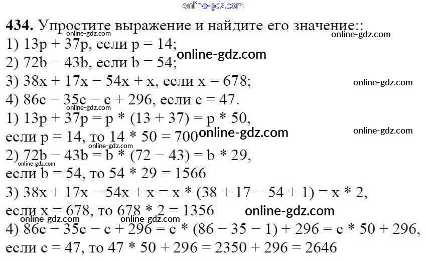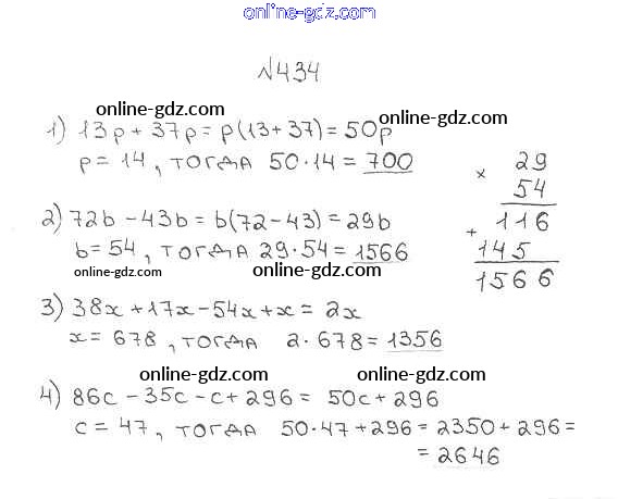 Готовые домашние задания по Математике за 5 класс Учебник Мерзляк, Полонский Алгоритм успеха 2016 - §17. Сочетательное и распределительное свойства умножения Глава 3. Умножение и деление натуральных чисел 434
