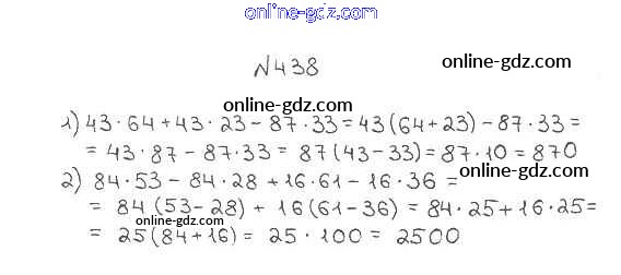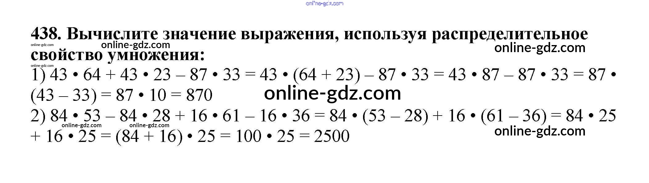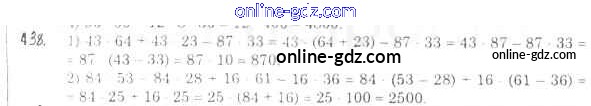 Готовые домашние задания по Математике за 5 класс Учебник Мерзляк, Полонский Алгоритм успеха 2016 - §17. Сочетательное и распределительное свойства умножения Глава 3. Умножение и деление натуральных чисел 438