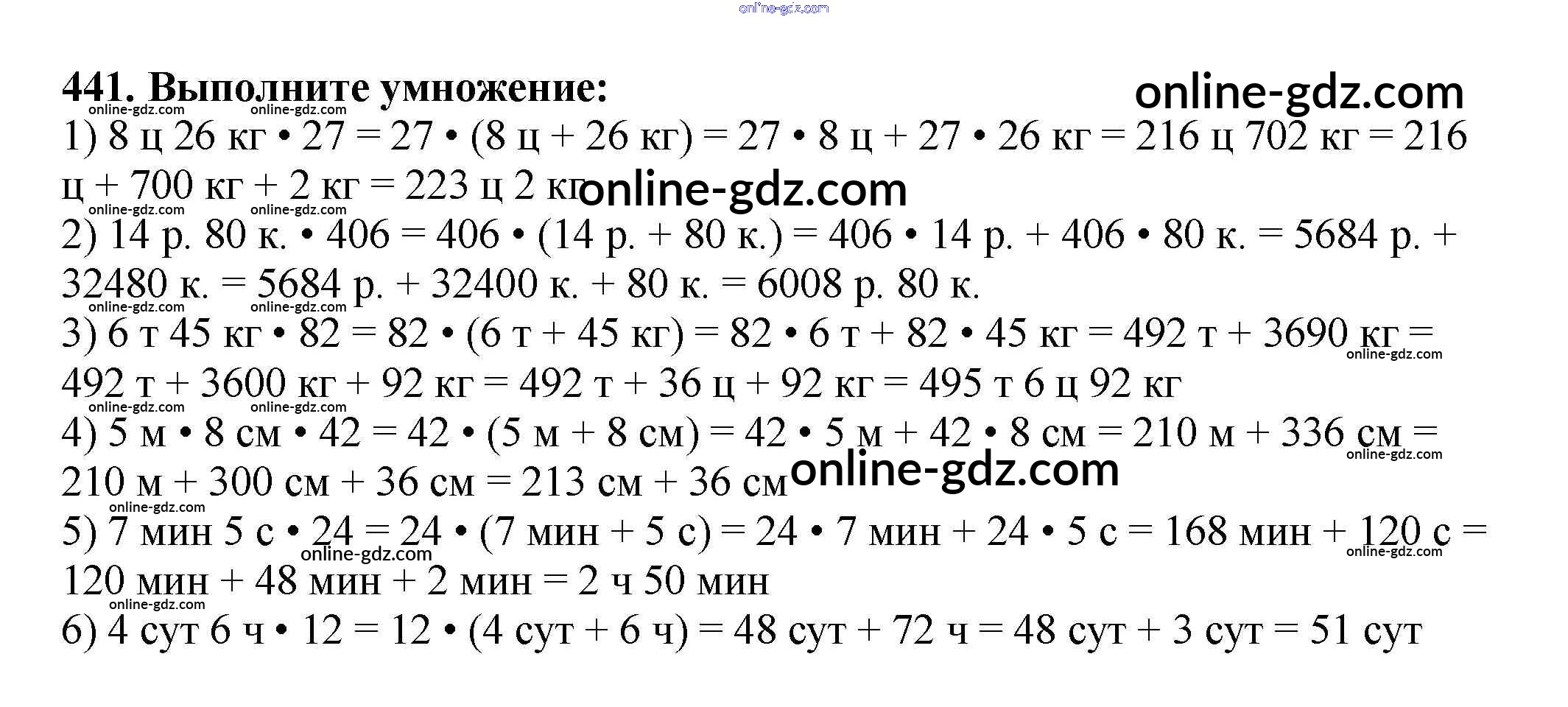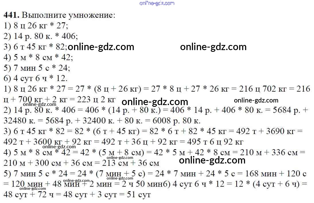 Готовые домашние задания по Математике за 5 класс Учебник Мерзляк, Полонский Алгоритм успеха 2016 - §17. Сочетательное и распределительное свойства умножения Глава 3. Умножение и деление натуральных чисел 441