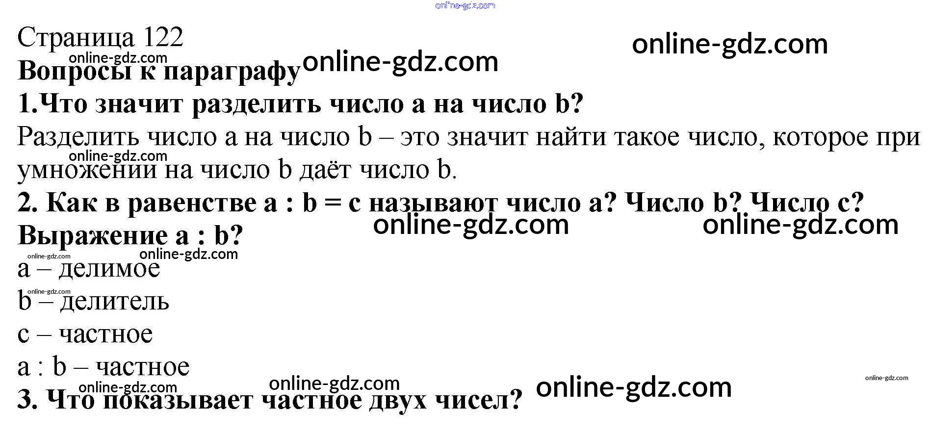Готовые домашние задания по Математике за 5 класс Учебник Мерзляк, Полонский Алгоритм успеха 2016 - Вопросы (страница 122) §18. Деление страница 122