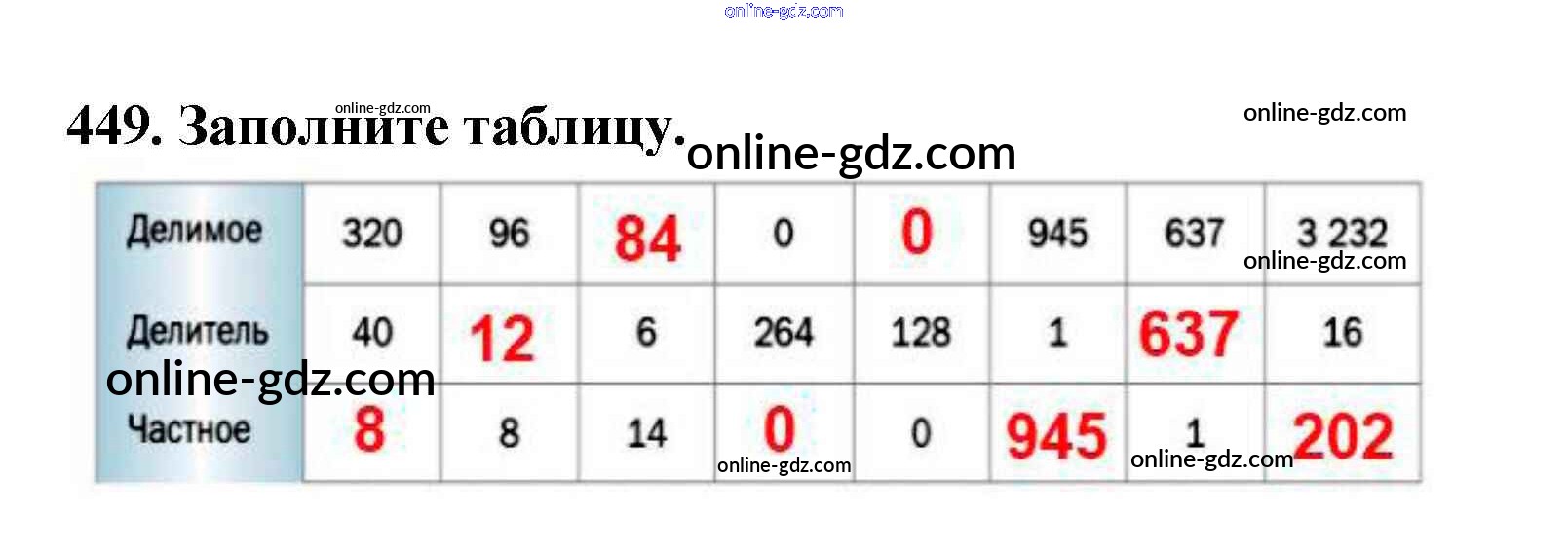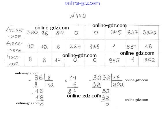 Готовые домашние задания по Математике за 5 класс Учебник Мерзляк, Полонский Алгоритм успеха 2016 - §18. Деление Глава 3. Умножение и деление натуральных чисел 449