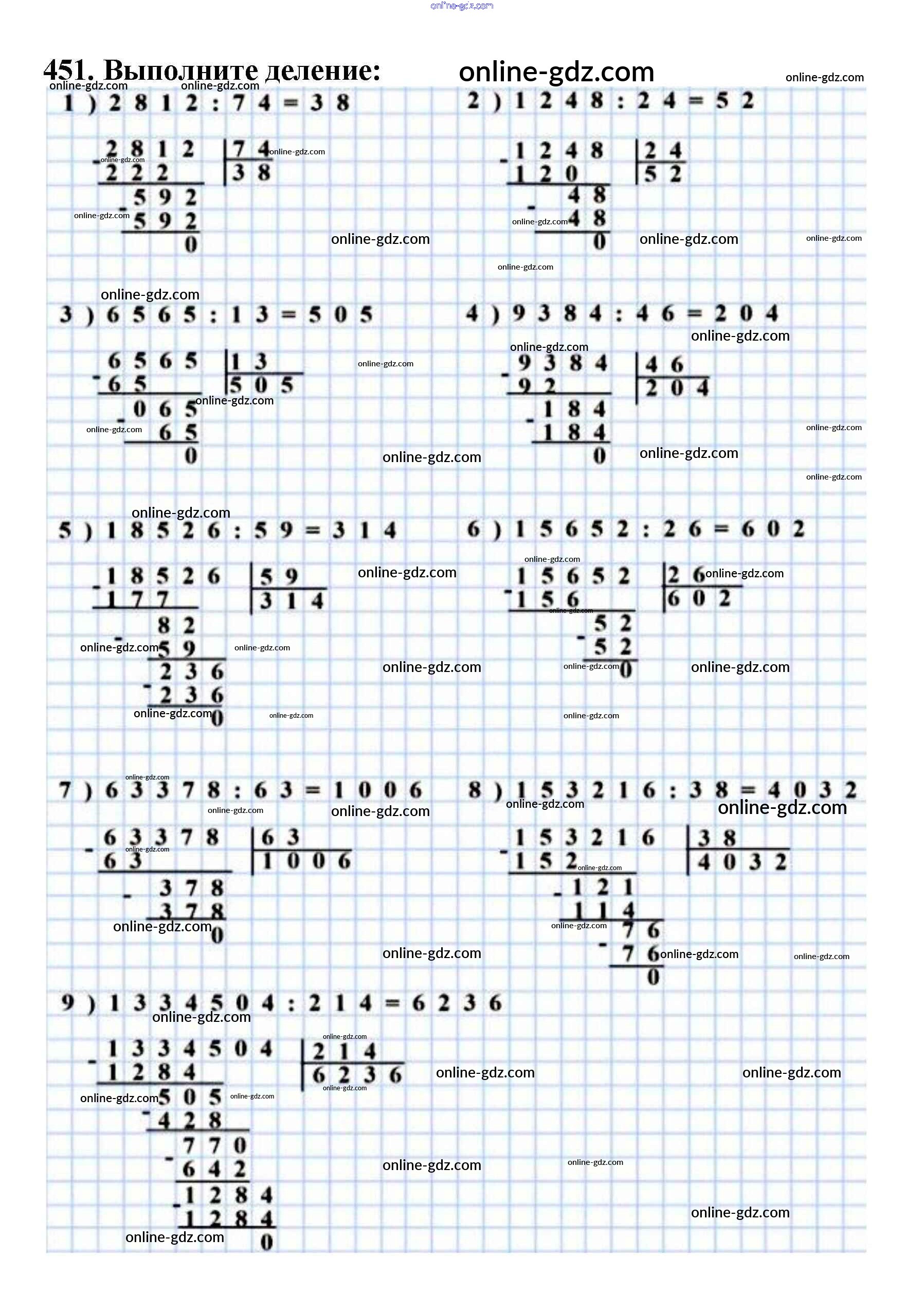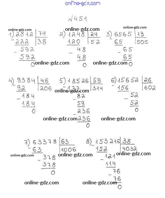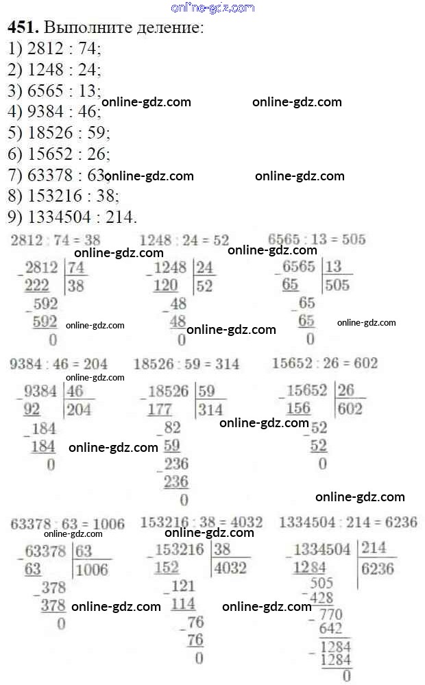 Готовые домашние задания по Математике за 5 класс Учебник Мерзляк, Полонский Алгоритм успеха 2016 - §18. Деление Глава 3. Умножение и деление натуральных чисел 451