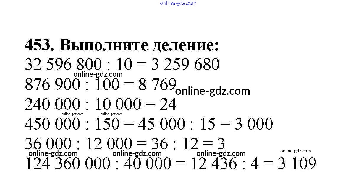 Готовые домашние задания по Математике за 5 класс Учебник Мерзляк, Полонский Алгоритм успеха 2016 - §18. Деление Глава 3. Умножение и деление натуральных чисел 453