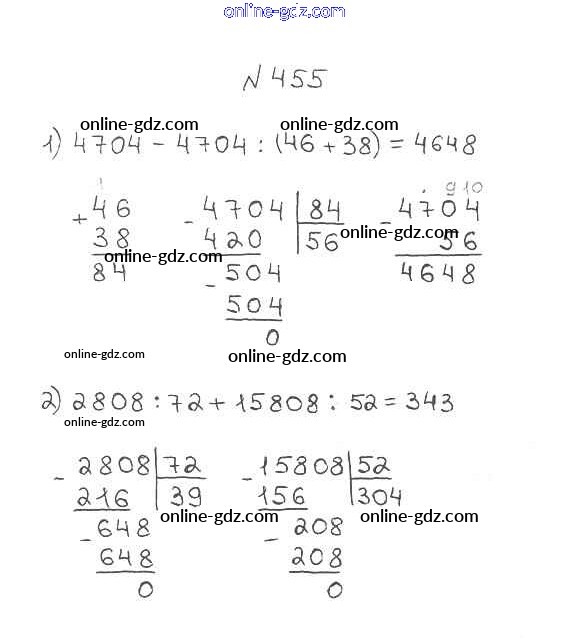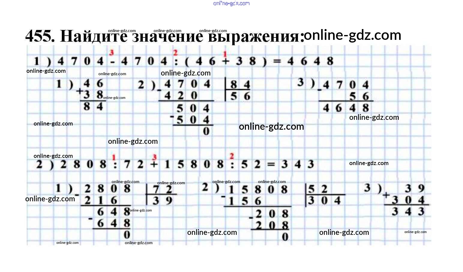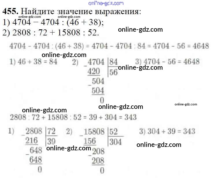 Готовые домашние задания по Математике за 5 класс Учебник Мерзляк, Полонский Алгоритм успеха 2016 - §18. Деление Глава 3. Умножение и деление натуральных чисел 455