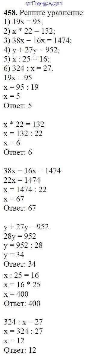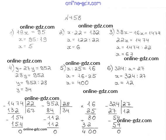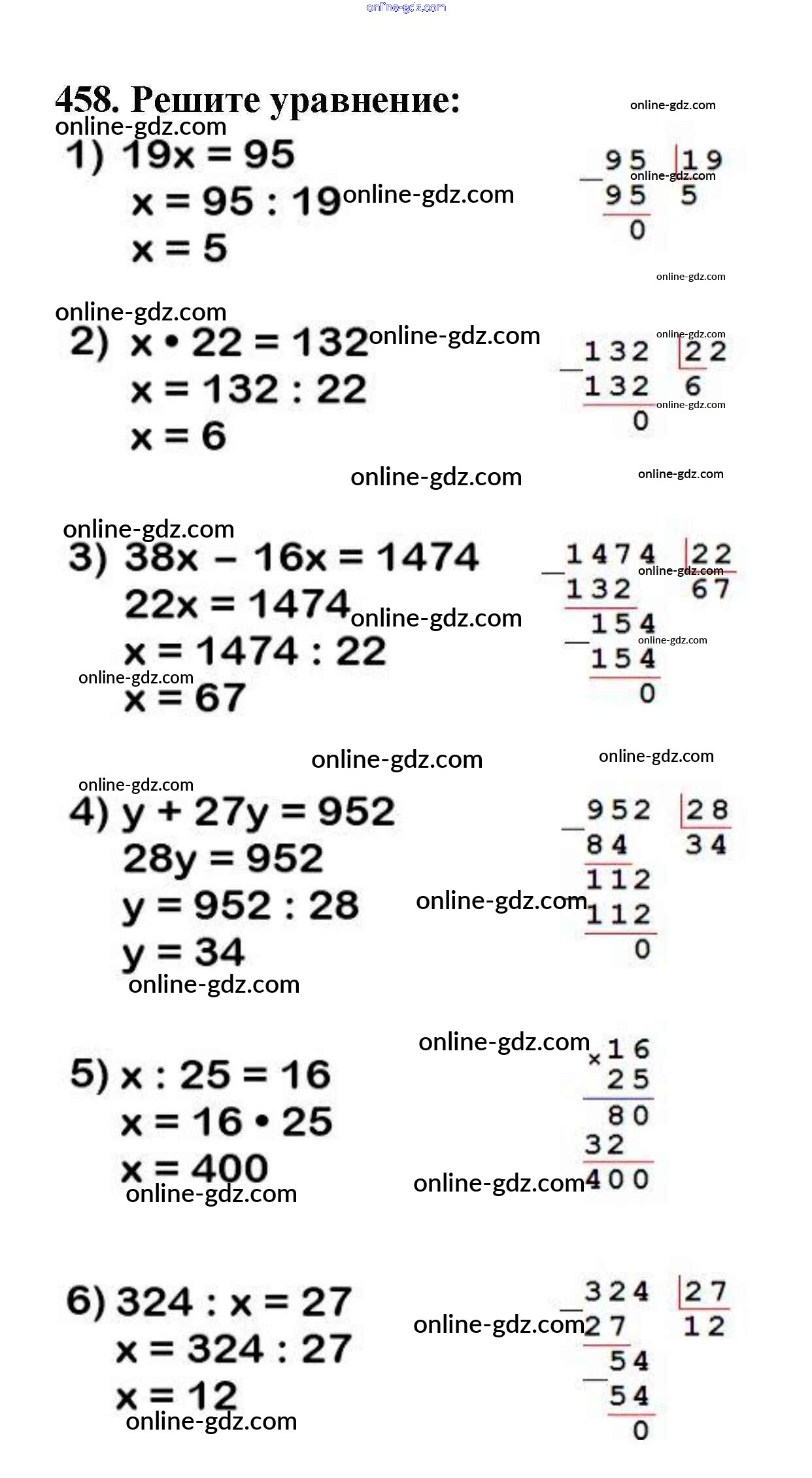 Готовые домашние задания по Математике за 5 класс Учебник Мерзляк, Полонский Алгоритм успеха 2016 - §18. Деление Глава 3. Умножение и деление натуральных чисел 458