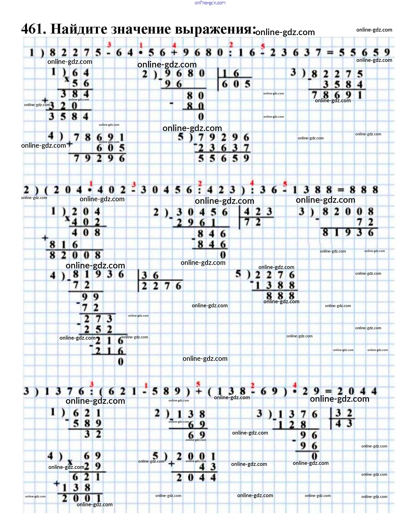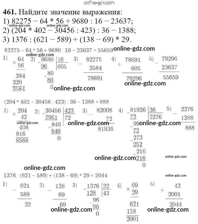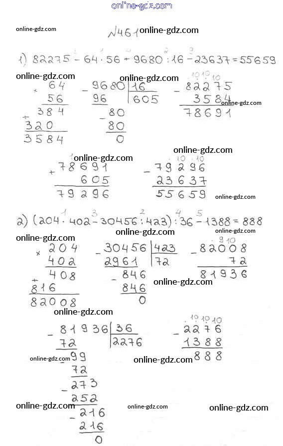 Готовые домашние задания по Математике за 5 класс Учебник Мерзляк, Полонский Алгоритм успеха 2016 - §18. Деление Глава 3. Умножение и деление натуральных чисел 461