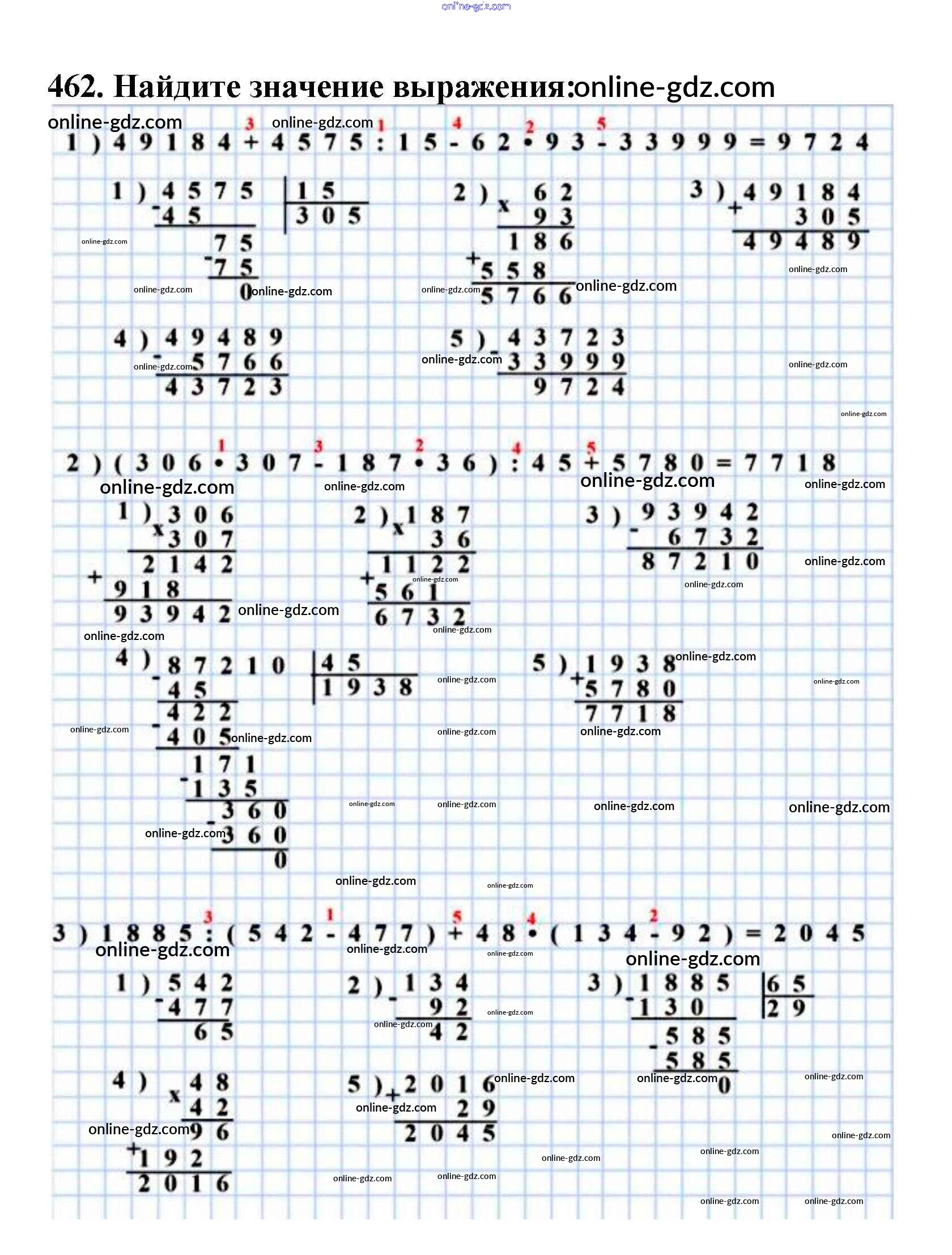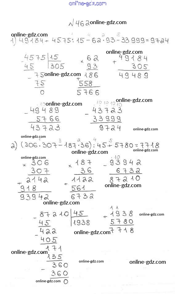 Готовые домашние задания по Математике за 5 класс Учебник Мерзляк, Полонский Алгоритм успеха 2016 - §18. Деление Глава 3. Умножение и деление натуральных чисел 462
