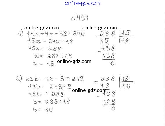 Готовые домашние задания по Математике за 5 класс Учебник Мерзляк, Полонский Алгоритм успеха 2016 - §18. Деление Глава 3. Умножение и деление натуральных чисел 491