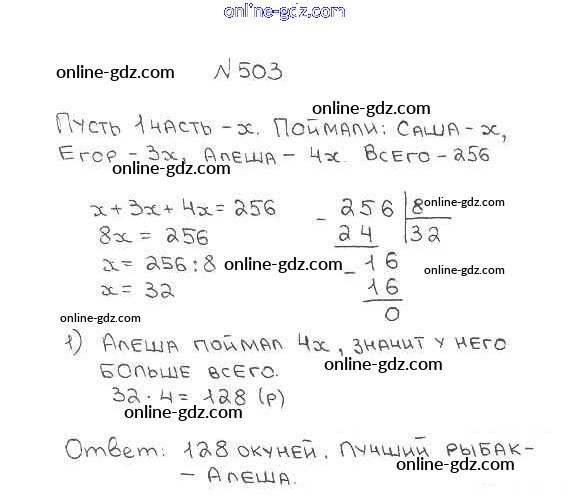 Готовые домашние задания по Математике за 5 класс Учебник Мерзляк, Полонский Алгоритм успеха 2016 - §18. Деление Глава 3. Умножение и деление натуральных чисел 503
